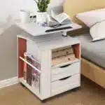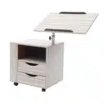 Ce meuble de chevet au style moderne marocain allie design épuré et fonctionnalité. Sa structure en panneau de densité robuste accueille un plateau réglable en hauteur (de 70 à 90 cm) et des compartiments de rangement pratiques. Compact (50 x 40 x 46 cm), il se glisse facilement à côté d’un lit ou d’un canapé. Monté sur roulettes avec freins, il se déplace en un clin d’œil tout en restant parfaitement stable une fois positionné.