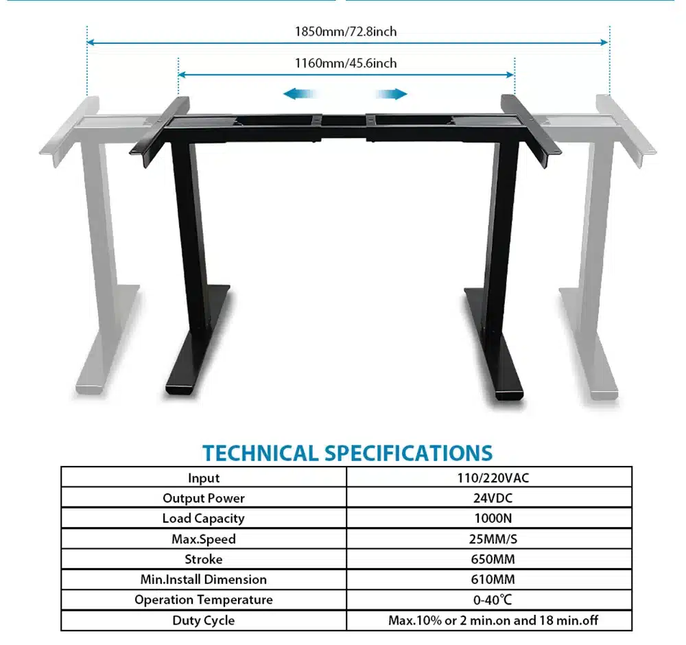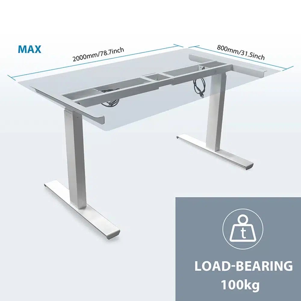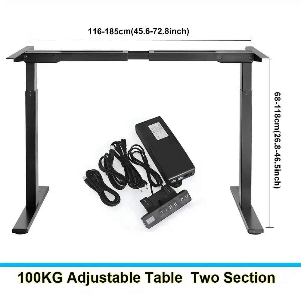 Ce cadre de bureau électrique à double moteur vous permet de créer un poste de travail 100 % ergonomique et personnalisable. Grâce à ses dimensions réglables (hauteur de 62 à 128 cm et largeur de 116 à 185 cm), il s’adapte à tous les types de plateaux standards. Doté d’un contrôleur numérique avec 4 hauteurs mémorisables, il permet de passer de la position assise à debout en toute fluidité. Robuste, silencieux et précis, il est idéal pour le télétravail, les open-spaces ou les bureaux professionnels.