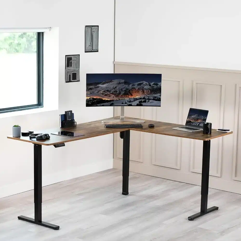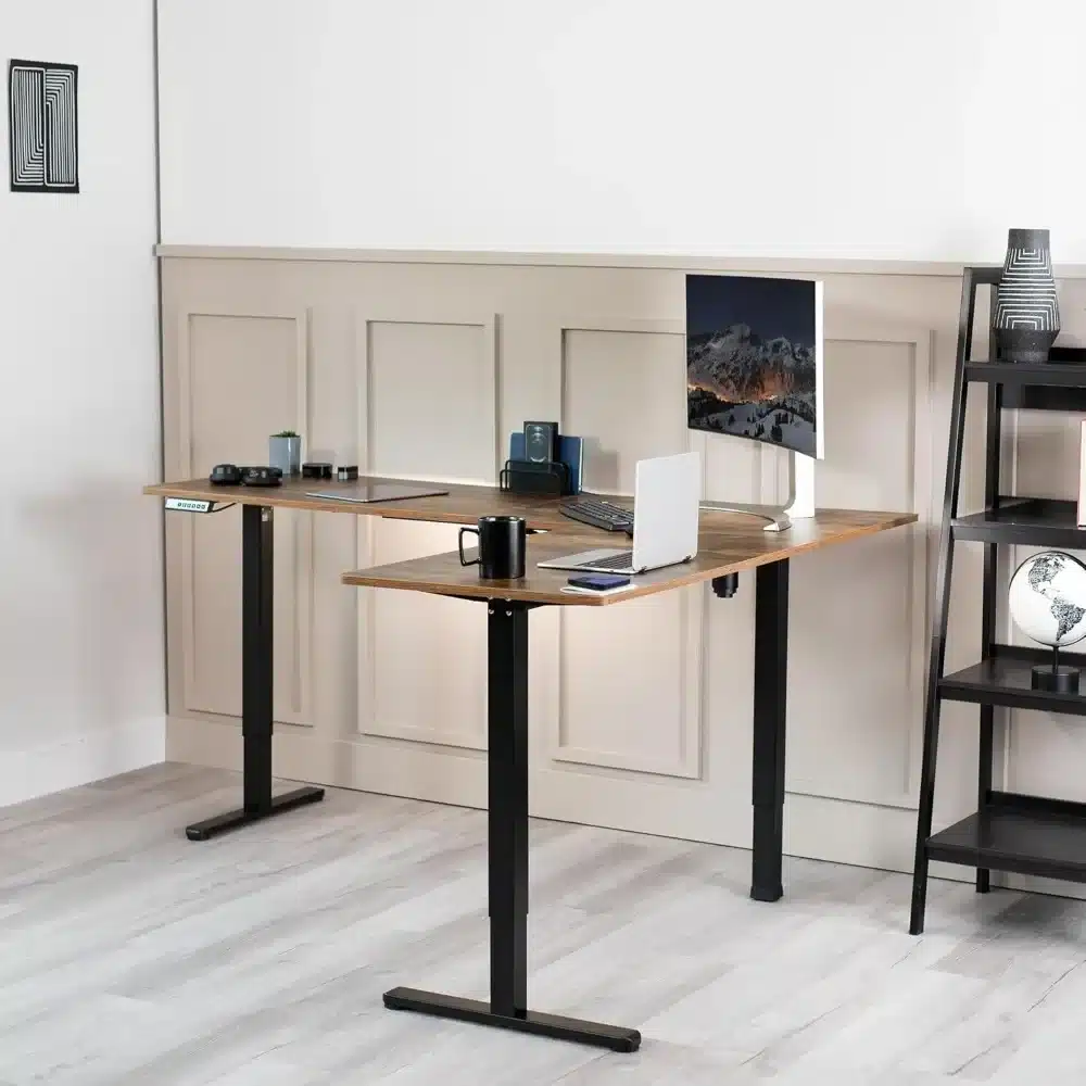 Avec sa large surface en L, ce bureau assis-debout d’angle offre un espace de travail fonctionnel, sans compromis sur l’ergonomie. Grâce à son plateau coulissant dédié au clavier, vos poignets restent alignés, réduisant la tension dans les épaules. Que vous soyez droitier ou gaucher, vous profitez d’un agencement fluide qui favorise une posture plus détendue et un meilleur confort sur la durée.