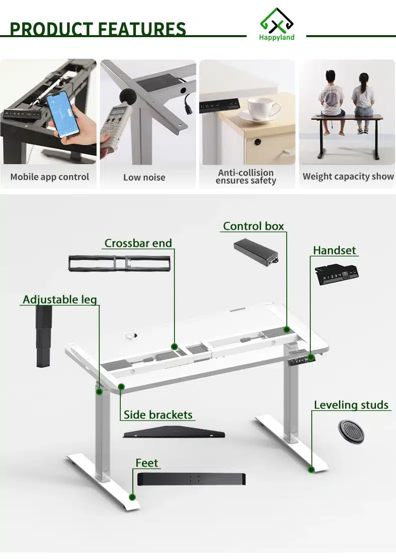 Le bureau assis-debout à manivelle YQXH allie simplicité d’utilisation et solidité. Sa poignée latérale se déplie facilement pour régler la hauteur sans effort, et se replie ensuite pour un rendu net et discret. Contrairement aux modèles électriques, il ne nécessite ni prise ni moteur : pratique pour les espaces sans alimentation, ou pour ceux qui recherchent une alternative durable et silencieuse. Sa structure en acier SPCC supporte jusqu’à 100 kg, ce qui vous permet d’y installer un double écran, une imprimante ou d’autres accessoires lourds. Certifié CE et ISO9001, ce bureau respecte les normes de qualité les plus exigeantes. Avec son design moderne et sa hauteur adaptable, il est idéal pour travailler confortablement, à votre rythme, en toute autonomie.