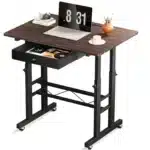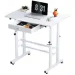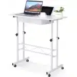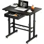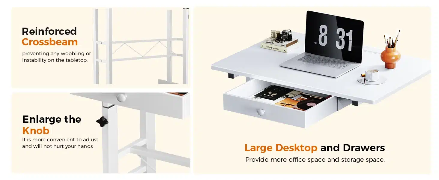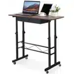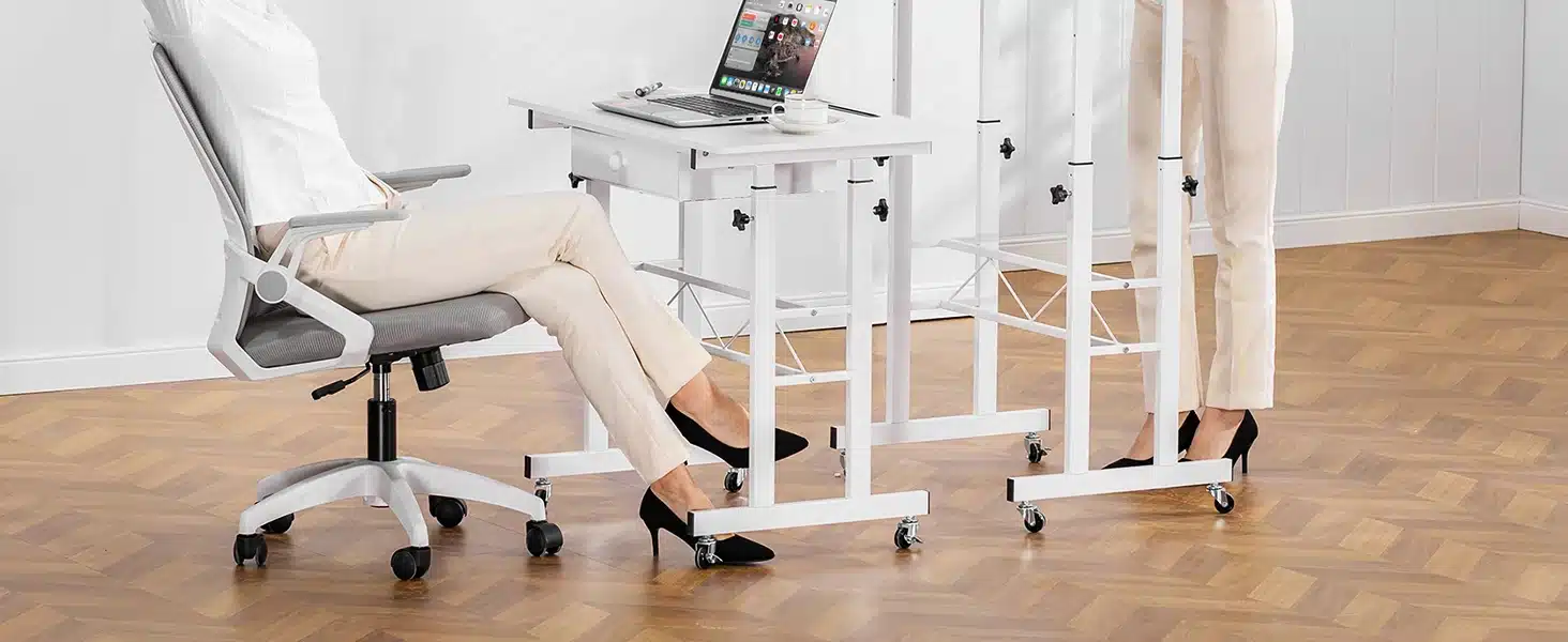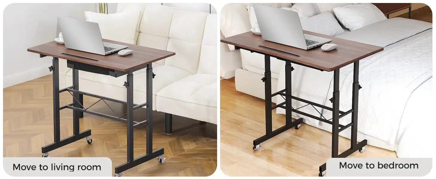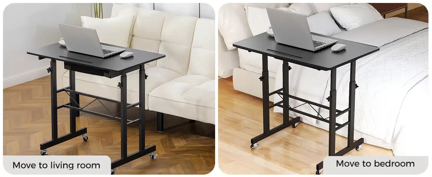 Compact mais ingénieux, ce bureau assis-debout GTPLAYER a été pensé pour allier ergonomie et praticité. Sa surface de travail de 80 x 50 cm offre assez d’espace pour un ordinateur portable, des documents ou même une tablette graphique. Son tiroir discret permet de garder l’essentiel à portée de main. Les roulettes verrouillables assurent une mobilité fluide tout en garantissant la stabilité une fois en place. Fabriqué en panneaux écologiques et cadre en acier robuste, il est aussi facile à nettoyer qu’à déplacer. Que vous travailliez dans un bureau, une chambre ou un salon, ce petit bureau mobile vous suivra partout, en douceur.