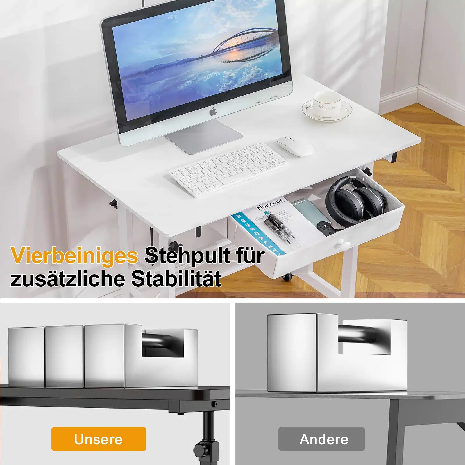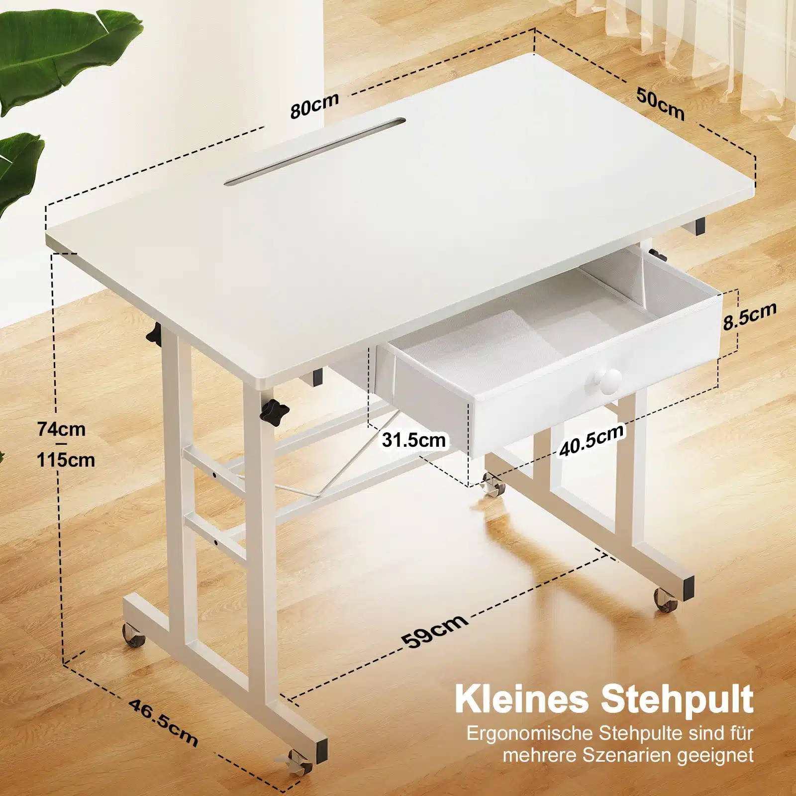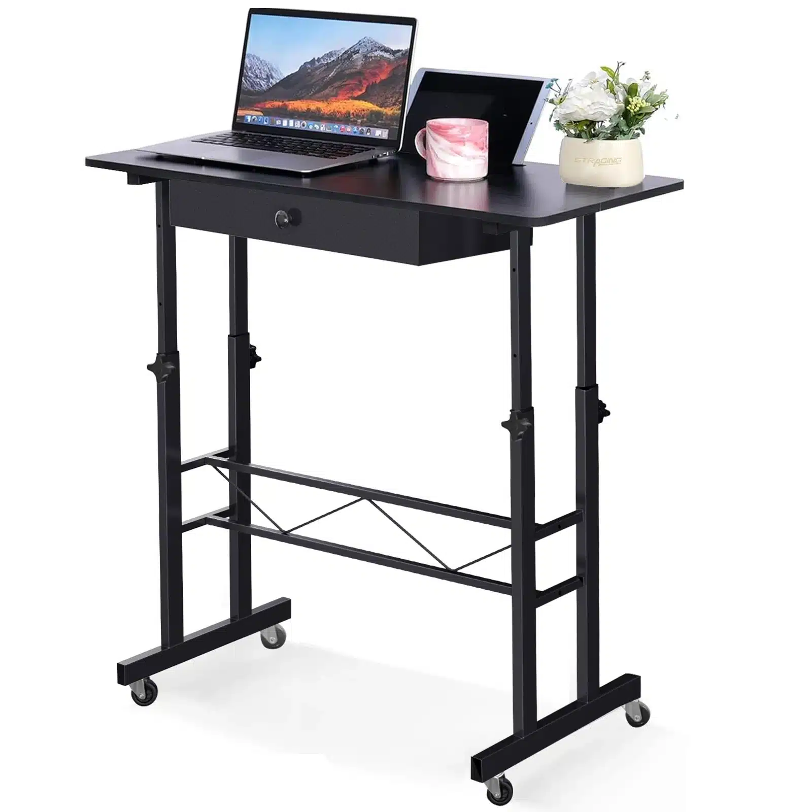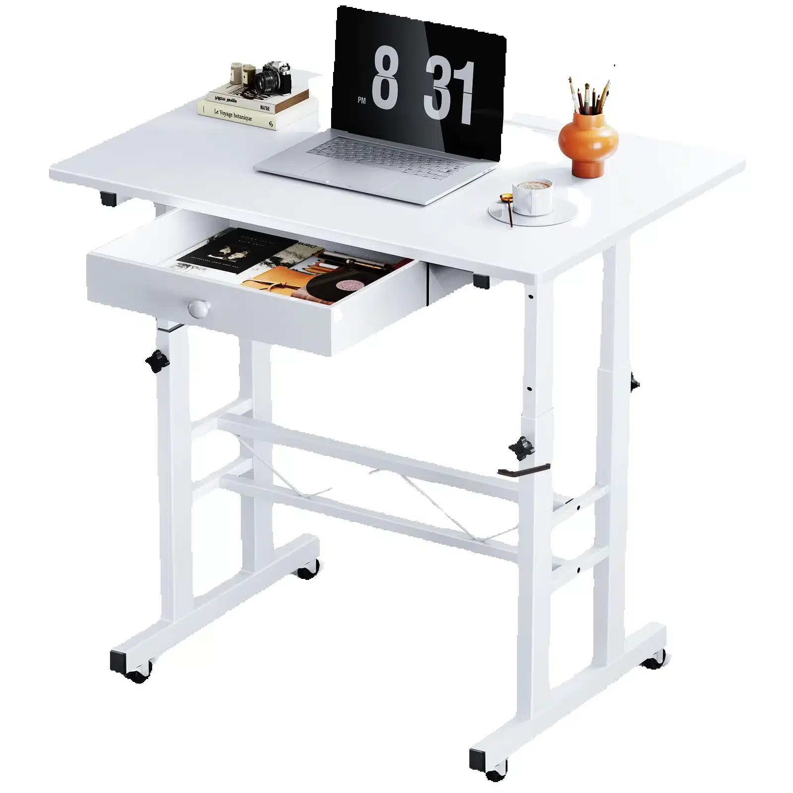 Compact mais ingénieux, ce bureau assis-debout GTPLAYER a été pensé pour allier ergonomie et praticité. Sa surface de travail de 80 x 50 cm offre assez d’espace pour un ordinateur portable, des documents ou même une tablette graphique. Son tiroir discret permet de garder l’essentiel à portée de main. Les roulettes verrouillables assurent une mobilité fluide tout en garantissant la stabilité une fois en place. Fabriqué en panneaux écologiques et cadre en acier robuste, il est aussi facile à nettoyer qu’à déplacer. Que vous travailliez dans un bureau, une chambre ou un salon, ce petit bureau mobile vous suivra partout, en douceur.