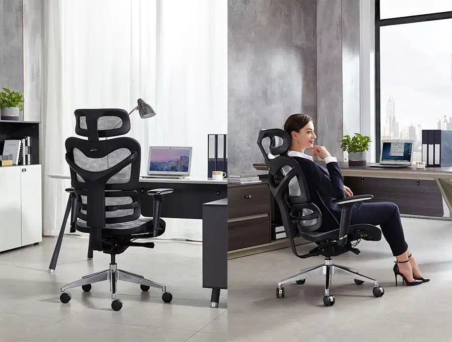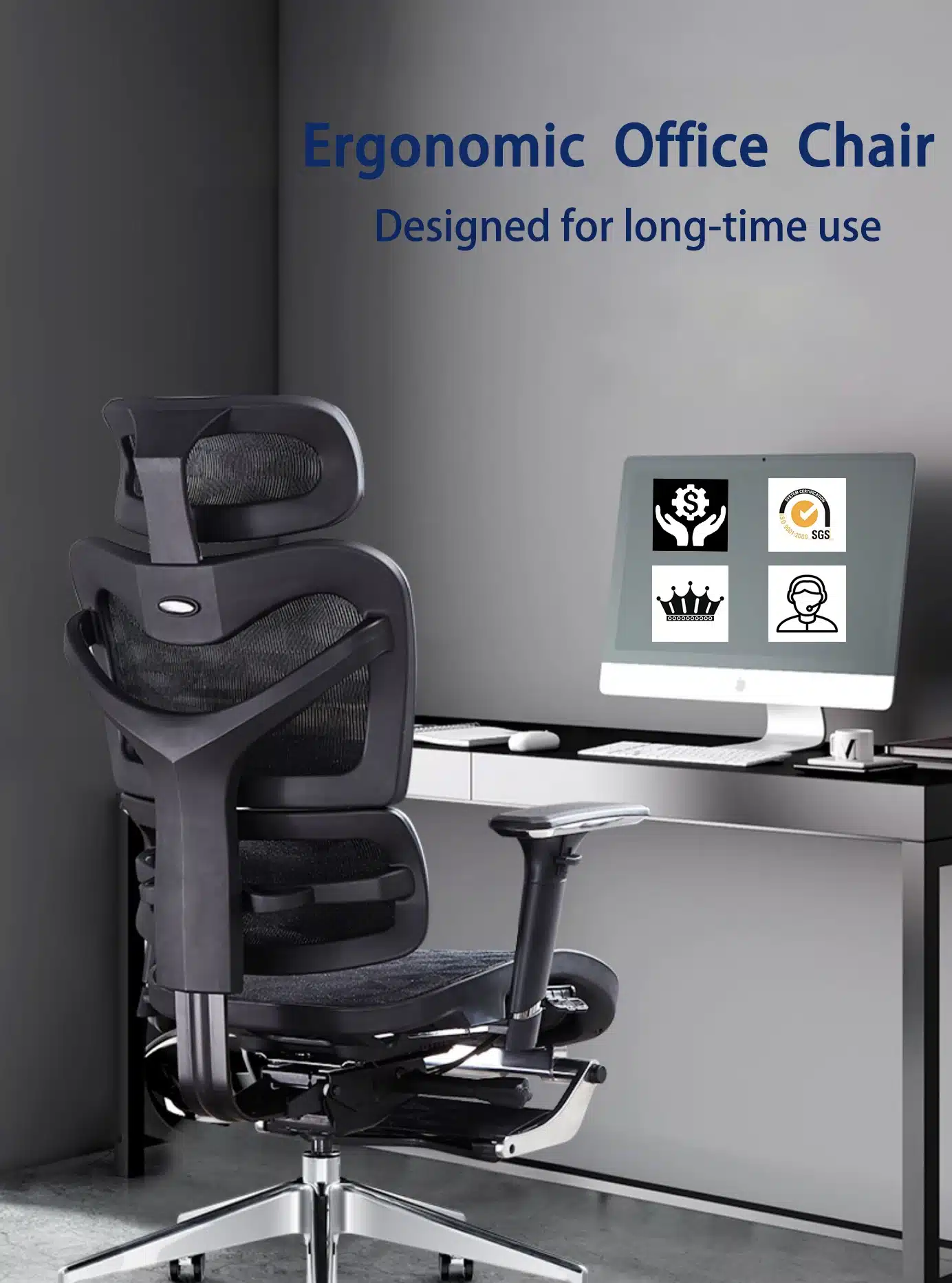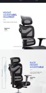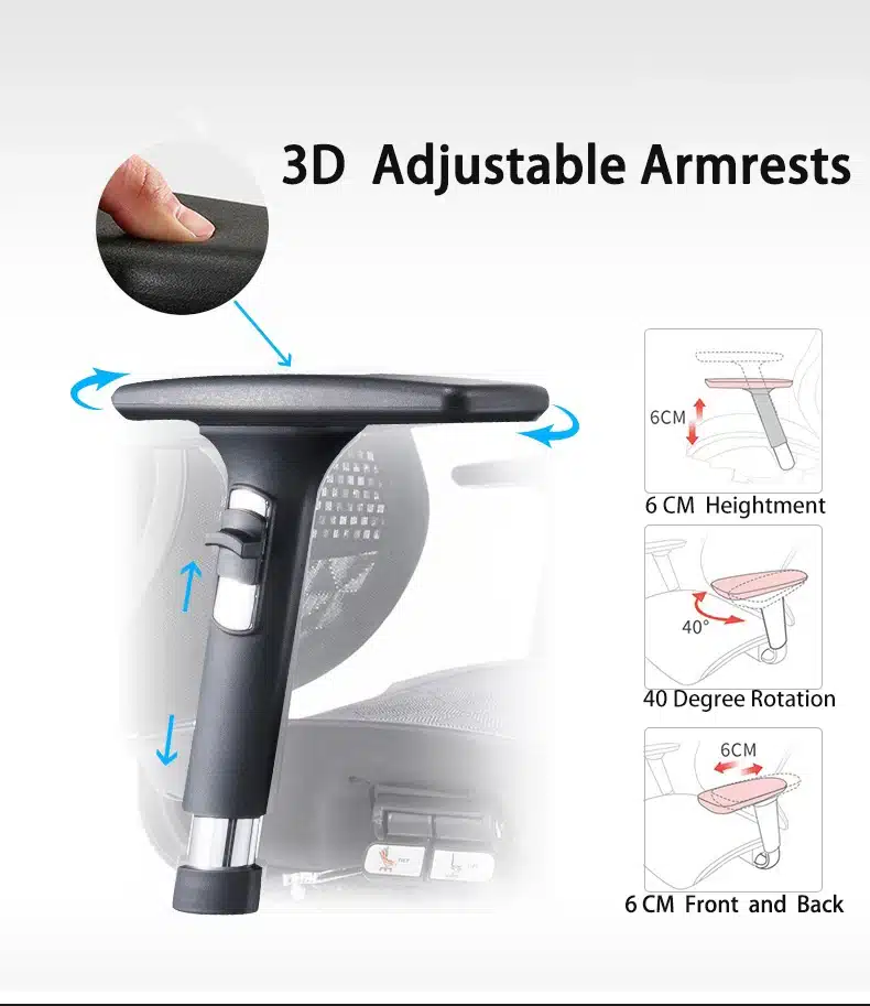 Cette chaise exécutive a été pensée pour offrir un soutien optimal sur tous les points de pression : lombaires, épaules, bras. Son dossier haut permet un bon appui du dos et limite les douleurs liées à la sédentarité prolongée. Le rembourrage est ferme mais confortable, la maille respirante évite la chaleur excessive et les accoudoirs 3D s’ajustent en hauteur, profondeur et orientation. Elle pivote à 360°, se déplace facilement grâce à ses roulettes de 60 mm, et se monte rapidement. Que ce soit pour le travail intensif, les visioconférences ou la concentration prolongée, cette chaise vous aide à rester bien assis, concentré, et à l’aise.