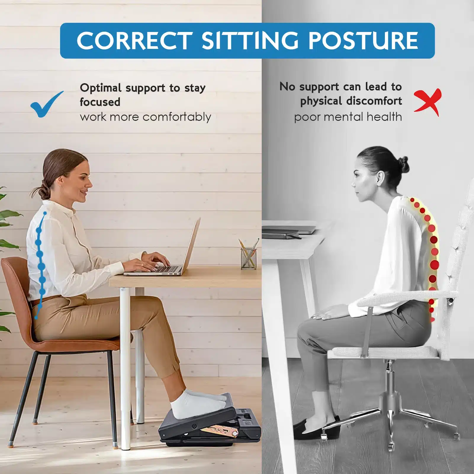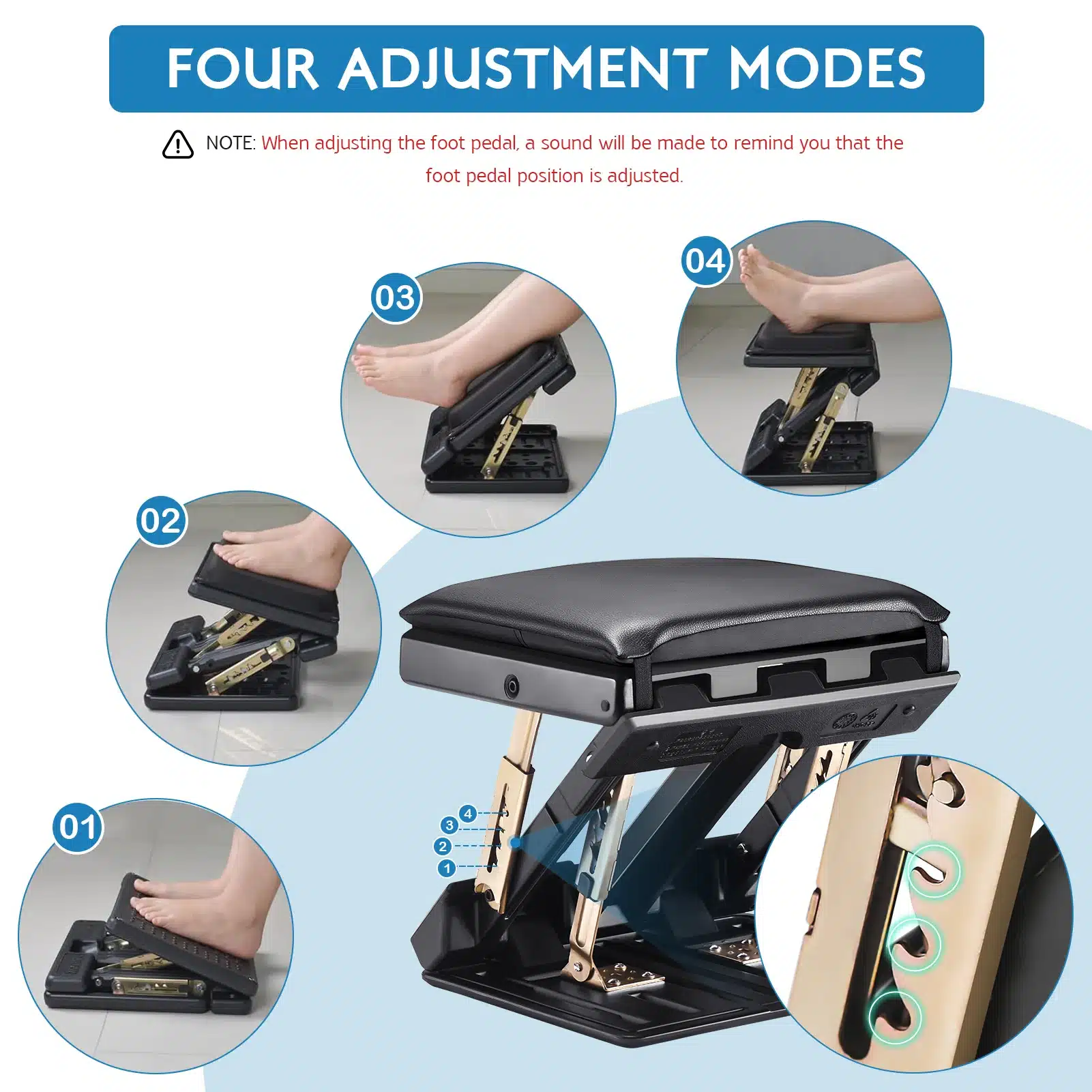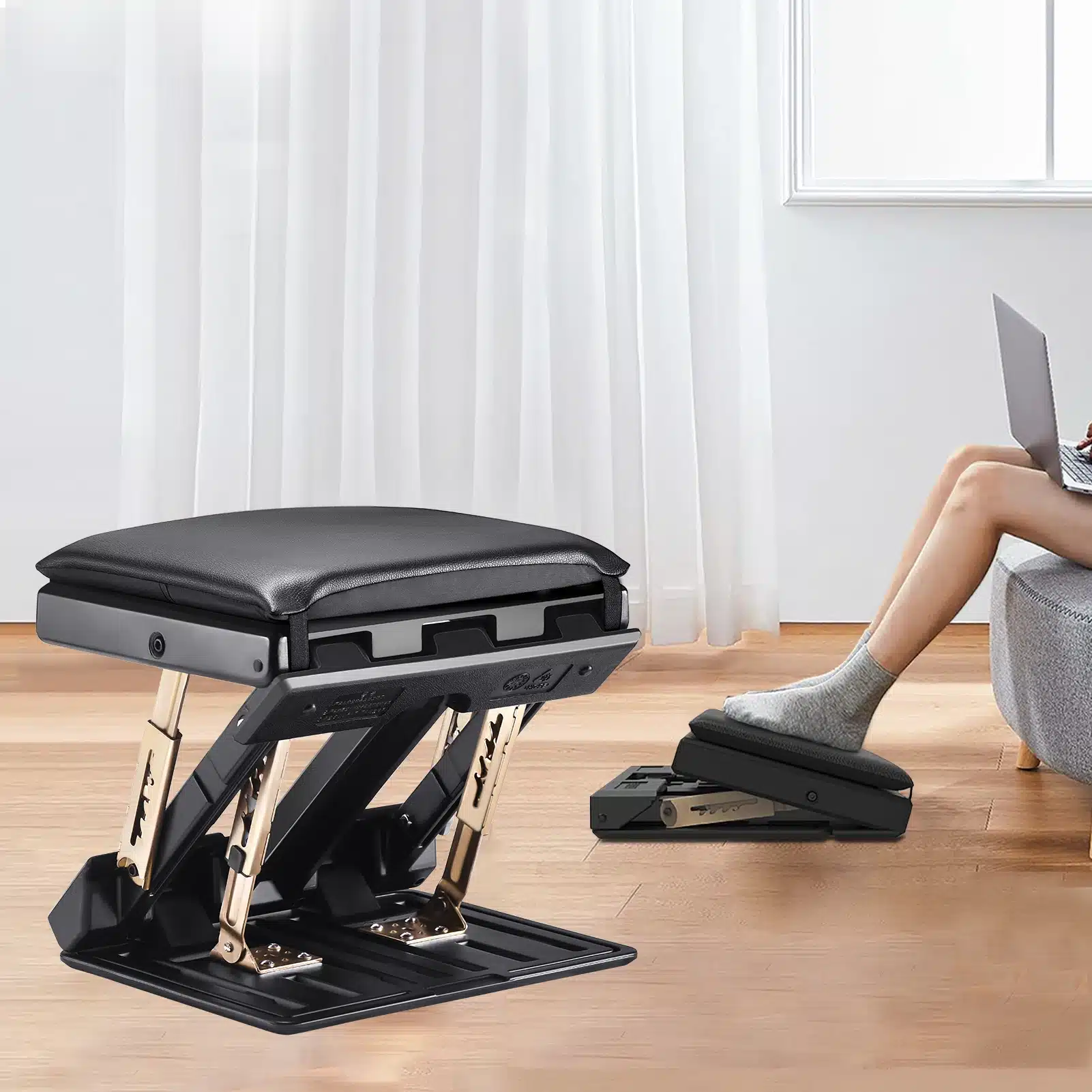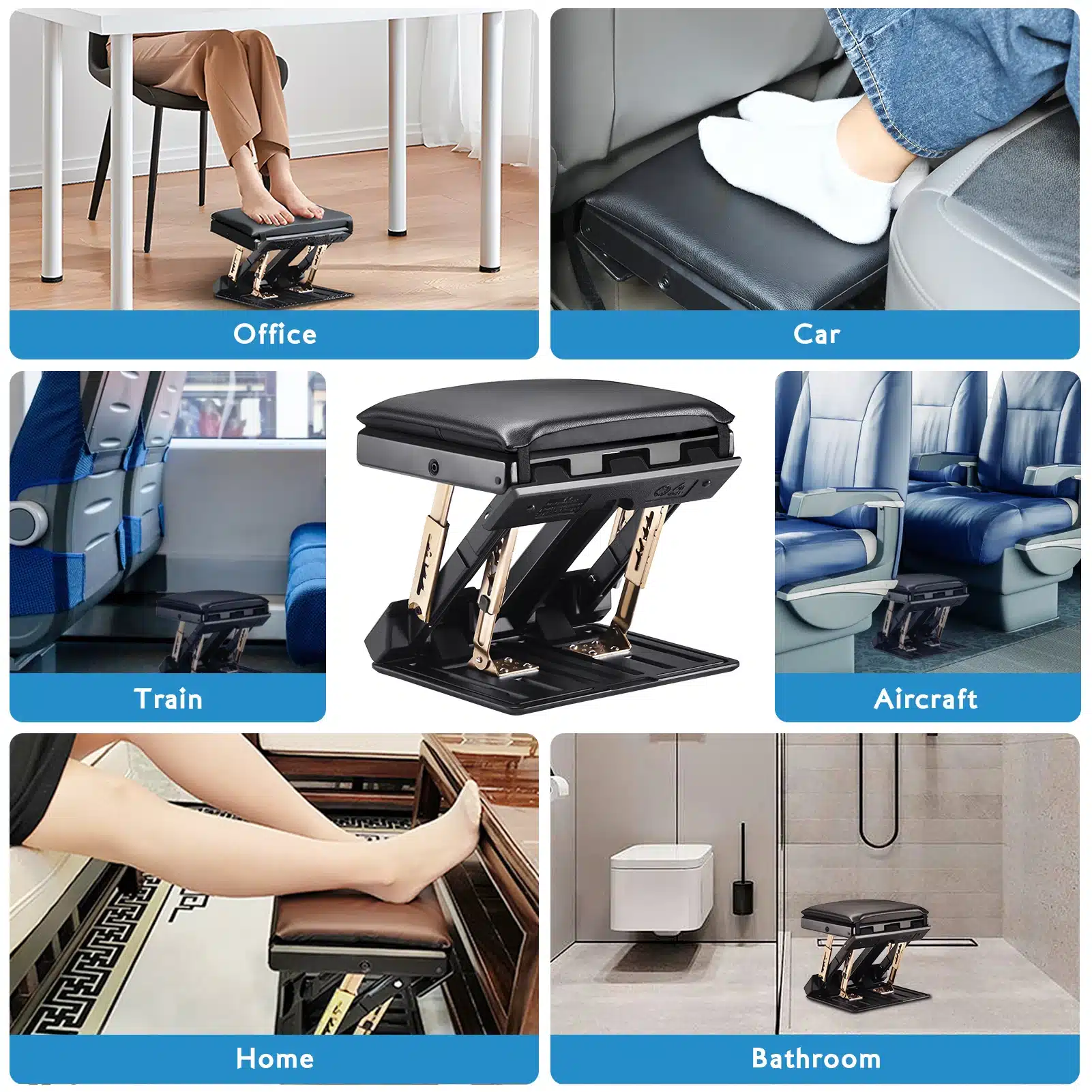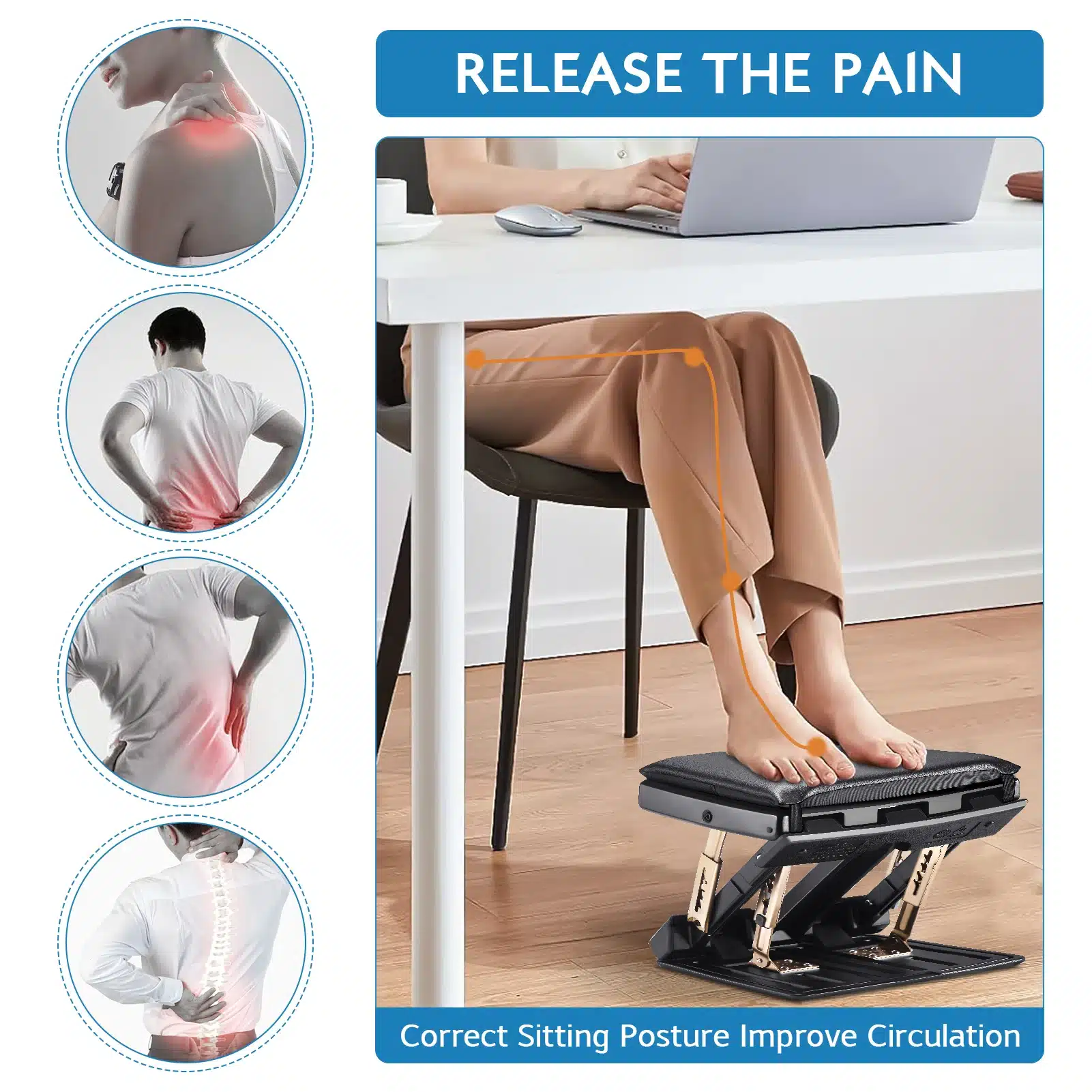 Ce repose-pieds a été pensé pour s’adapter à vous. Grâce à ses 12 combinaisons de réglage (4 niveaux de hauteur et 3 angles d’inclinaison), vous pouvez enfin trouver la position idéale pour vos jambes, quel que soit votre poste de travail. Il soulage la pression sur les cuisses, favorise la circulation sanguine et limite la fatigue en fin de journée. Sa structure pliable permet de l’emporter partout : bureau, télétravail, avion, ou même en voiture. Léger mais solide, il supporte jusqu’à 120 kg. Pratique, ergonomique, efficace !