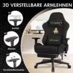 Ce fauteuil ergonomique a été conçu pour s’adapter à vos besoins et à vos mouvements. Les accoudoirs 3D se règlent en hauteur, en profondeur et en rotation, pour offrir un soutien précis à vos bras lors du travail ou du jeu. Le repose-pieds se déploie en un clin d’œil pour détendre les jambes, tandis que le dossier inclinable (90° à 155°) vous permet de passer facilement d’une position active à une position de repos. Sa structure solide et son assise généreuse assurent un excellent maintien même sur de longues périodes. Grâce à ses roulettes silencieuses, son mécanisme de rotation 360° et son design moderne, il s’intègre parfaitement dans un bureau professionnel comme dans une pièce de vie. Facile à monter, durable et pensé pour votre bien-être, ce siège devient vite indispensable pour prévenir les tensions du quotidien et rester productif sans sacrifier votre confort.