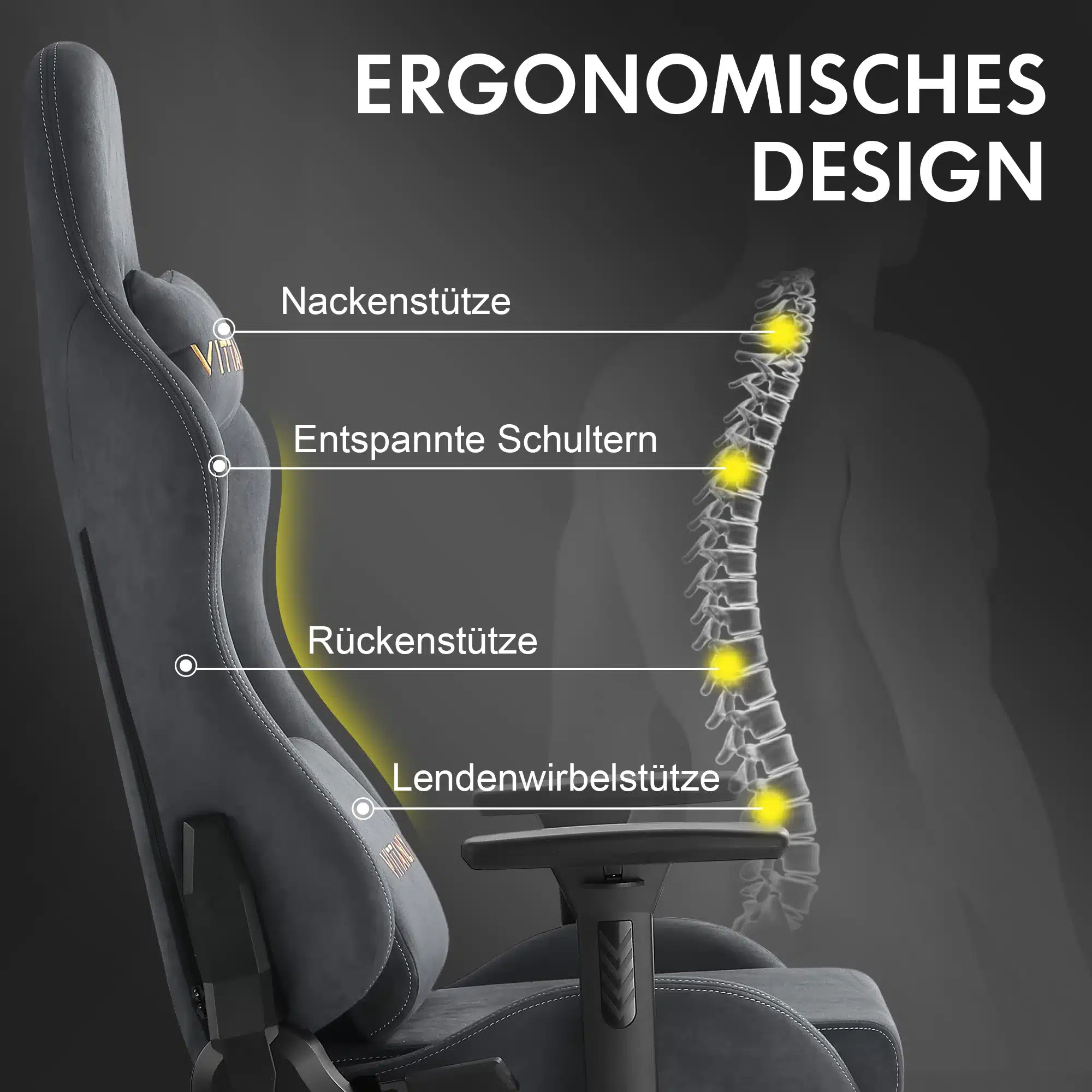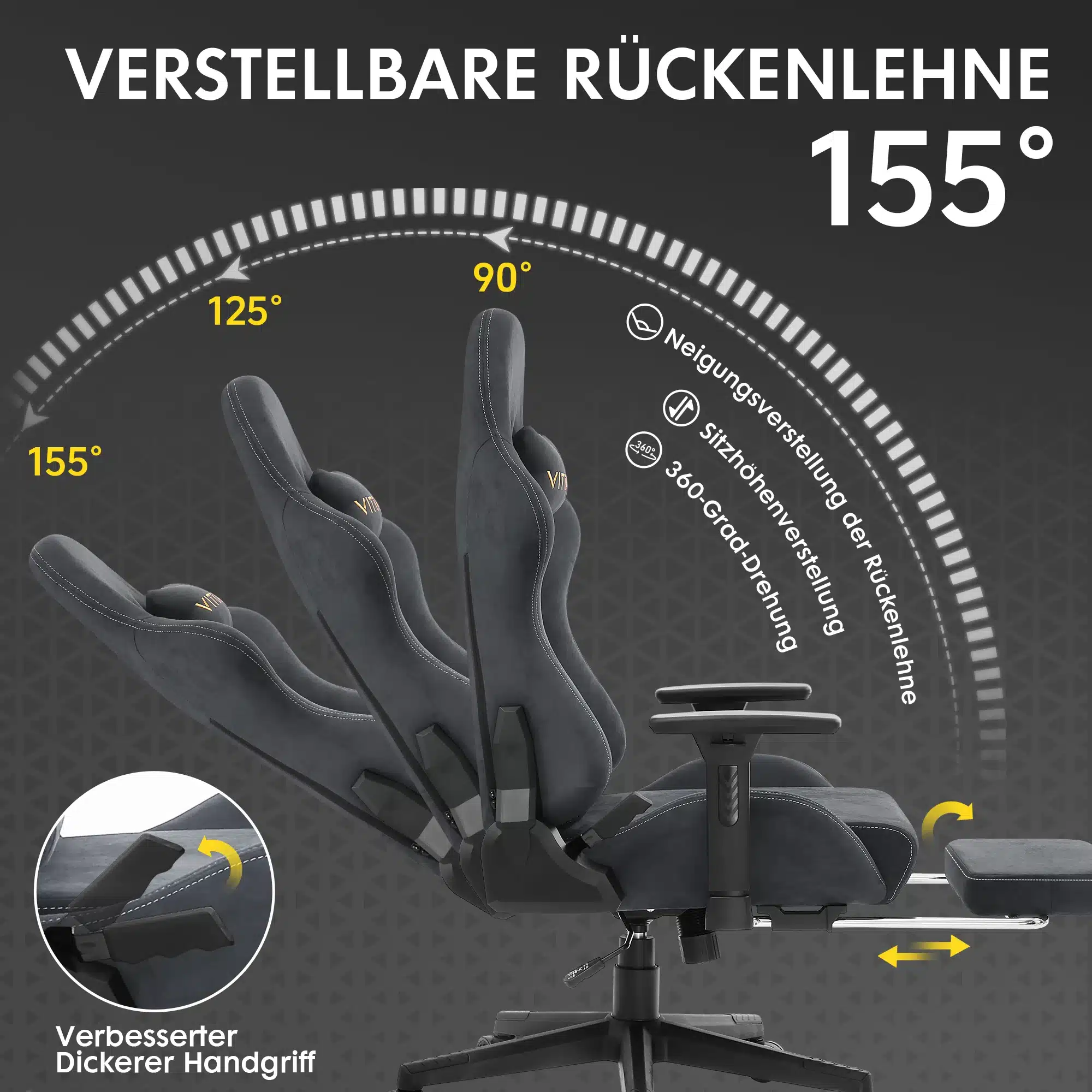 Ce siège allie style et performance. Sa forme ergonomique épouse parfaitement la courbure naturelle de votre dos, en soutenant efficacement les lombaires, les épaules et la nuque. Le dossier inclinable jusqu’à 155°, combiné au repose-pieds extensible, vous permet de basculer facilement entre concentration et relaxation. Le revêtement en cuir suédé haut de gamme, doux et respirant, limite les sensations d’inconfort en été comme en hiver. Et avec sa mousse haute densité de 10 cm, ce fauteuil transforme chaque heure passée assis en pur moment de confort.