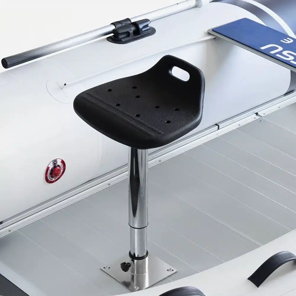 Le support de siège JayCreer est conçu pour offrir stabilité, confort et adaptabilité sur votre bateau. Compatible avec les bateaux d’assaut et les bateaux de pêche au leurre, il s’ajuste facilement en hauteur (de 40 à 50 cm) pour s’adapter à votre posture et aux conditions de navigation. Son coussin épais de 3 cm repose sur une structure solide en alliage métallique. Grâce à son écrou de fixation sécurisé, il assure une bonne tenue, même par mer agitée.