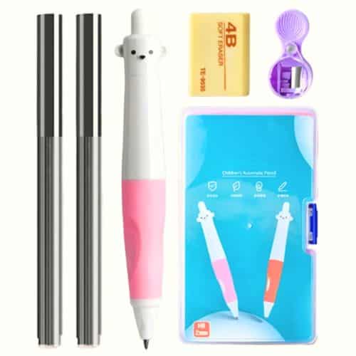 Disponible en bleu, rose ou orange, ce stylo ergonomique n’est pas seulement fonctionnel, mais aussi plaisant à regarder. La tête d’ourson sur le haut du stylo ajoute une touche de fantaisie, rendant l’apprentissage de la bonne posture d’écriture amusant avec cet accessoire ergonomique.