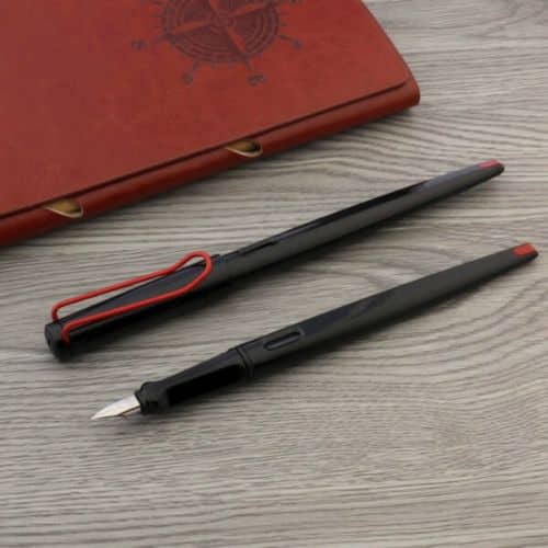 Ce stylo ergonomique à plume est noir avec son attache rouge, ce qui le rend très élégant. Il mesure 180 mm de long environ et vous offre le choix de la taille de la plume. Ses proportions très ergonomiques vous offrirons un très bon confort d’écriture.