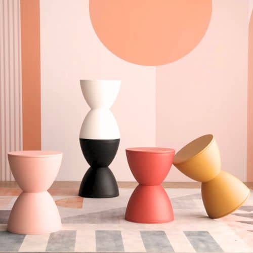 Optez pour un tabouret contemporain en forme de sablier. Il apportera une touche de modernité à votre intérieur. Il est disponible en divers coloris, choisissez ceux ou celui qui vous plait le plus.