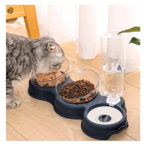Découvrez notre gamelle 3 en 1 à double bol ergonomique et son distributeur d’eau bleu marine. Votre chat va l’adorer. Montrez lui que vous prenez soin de lui avec cette gamelle surélevée qui lui permettra de se nourrir sans avoir mal aux cervicales.