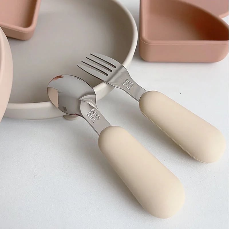 Lot de Deux Couverts Ergonomiques Bébé en Acier Inoxydable