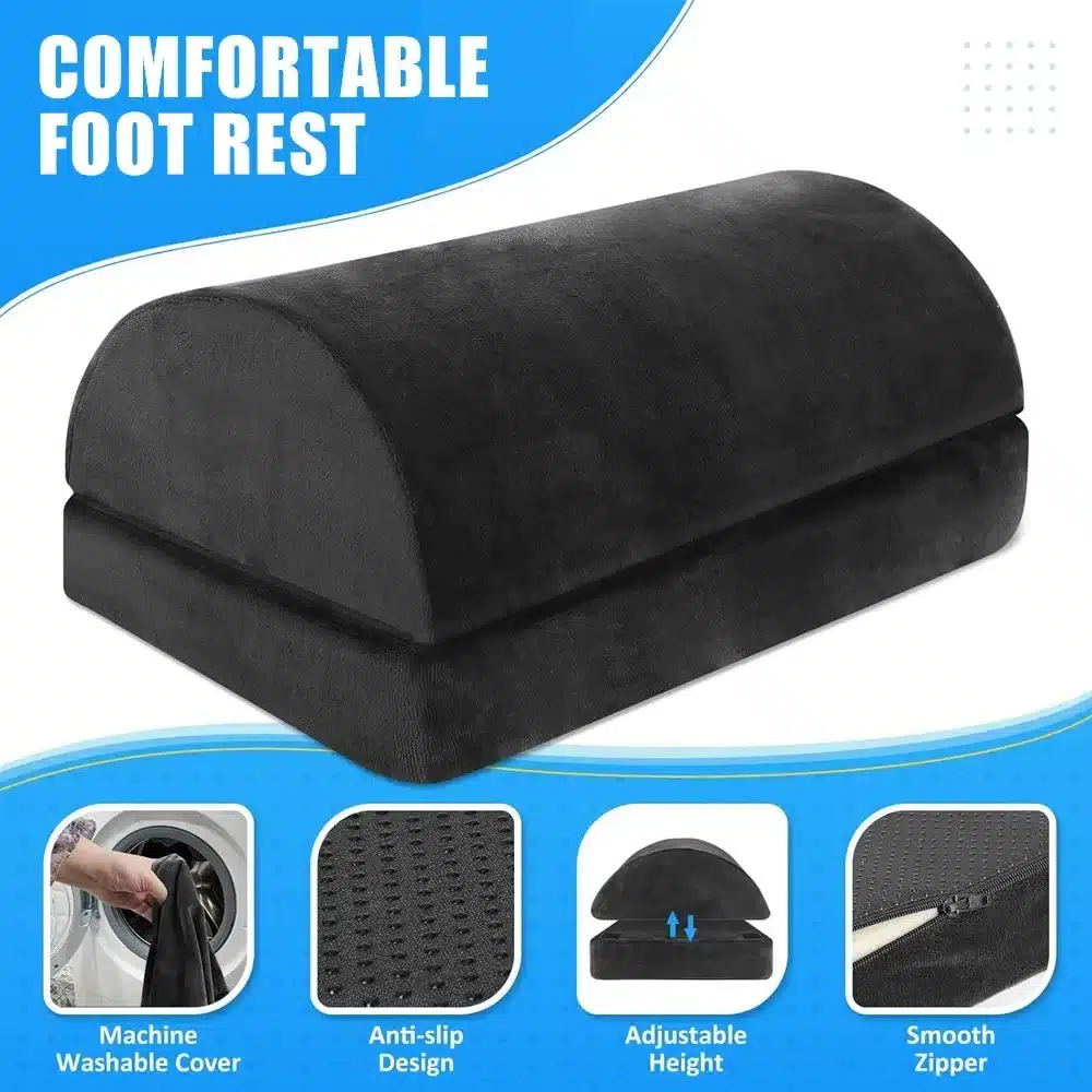 Repose-pieds réglable en 2 hauteurs sous le bureau, repose-pieds en mousse à mémoire de forme souple sous le bureau pour repose-pieds au travail, à la maison, en avion, aux voyages