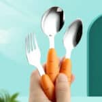 Ce set de couverts ergonomiques est spécialement conçu pour captiver les enfants et les encourager à manger seuls. Chaque pièce est formée pour ressembler à une carotte, ce qui stimule la curiosité et l’enthousiasme des petits lors des repas. Le manche ergonomique convient parfaitement aux petites mains, rendant chaque repas plus simple et plus agréable. L’acier inoxydable assure une utilisation sûre et durable.