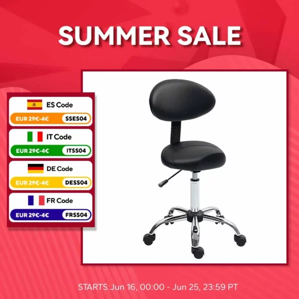 Ce tabouret HOMCOM est conçu pour vous offrir confort et liberté de mouvement tout au long de la journée. Son assise épaisse et son dossier ergonomique sont rembourrés de mousse pour un maintien agréable, même pendant les sessions prolongées. Grâce à son siège pivotant à 360° et à ses roulettes fluides, vous vous déplacez sans effort dans votre espace de travail. Idéal pour les salons de coiffure, instituts de beauté, espaces de tatouage ou postes de maquillage, ce tabouret s’adapte à vos besoins grâce à sa hauteur ajustable.