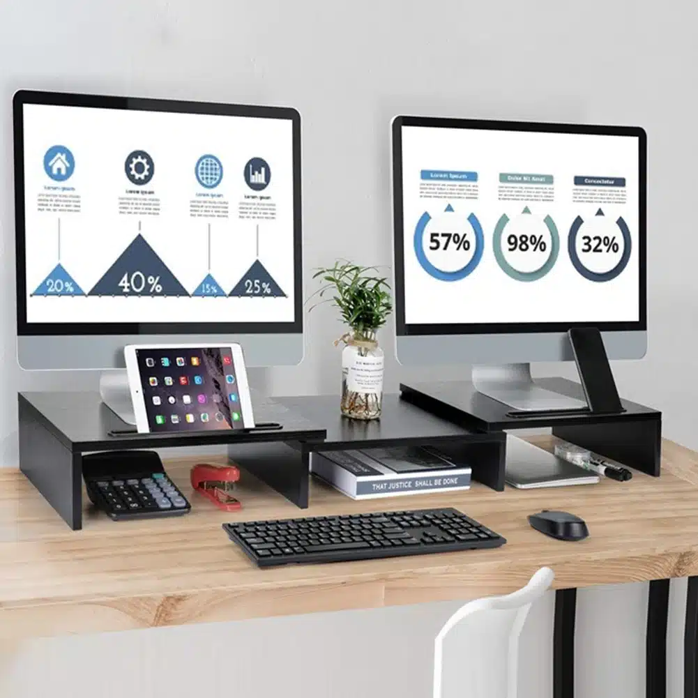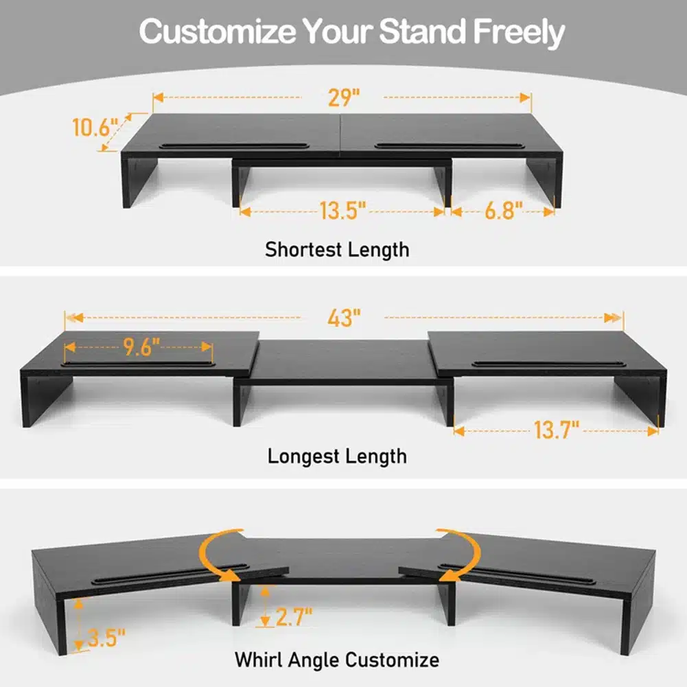 Support de support pour double moniteur, avec longueur réglable et Angle pivotant, organisateur de bureau pour ordinateur portable, imprimante, bureau à domicile
