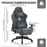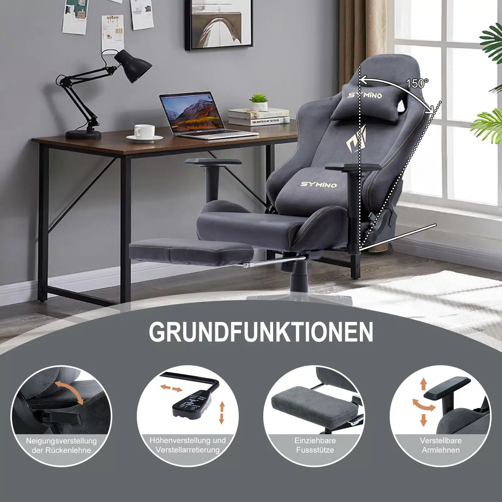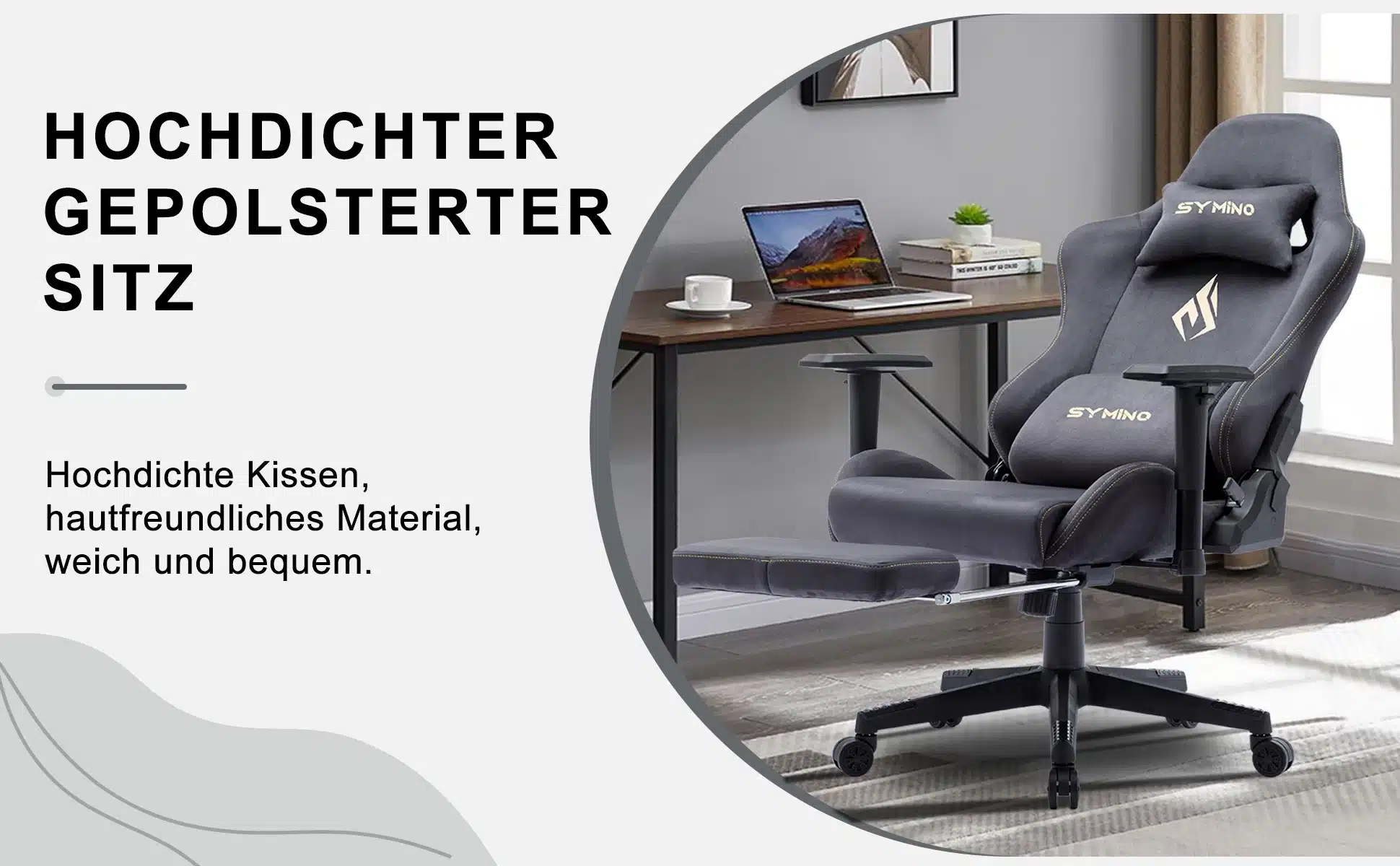 Symino-Chaise de jeu ergonomique avec repose-pieds, chaise PC respirante, coussin lombaire réglable, coussin de repos pour sauna