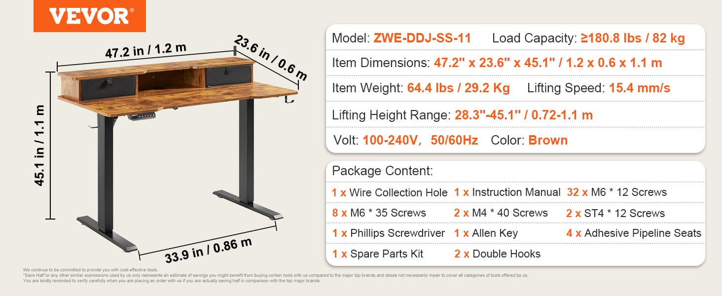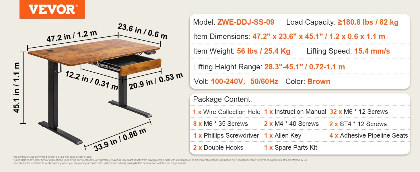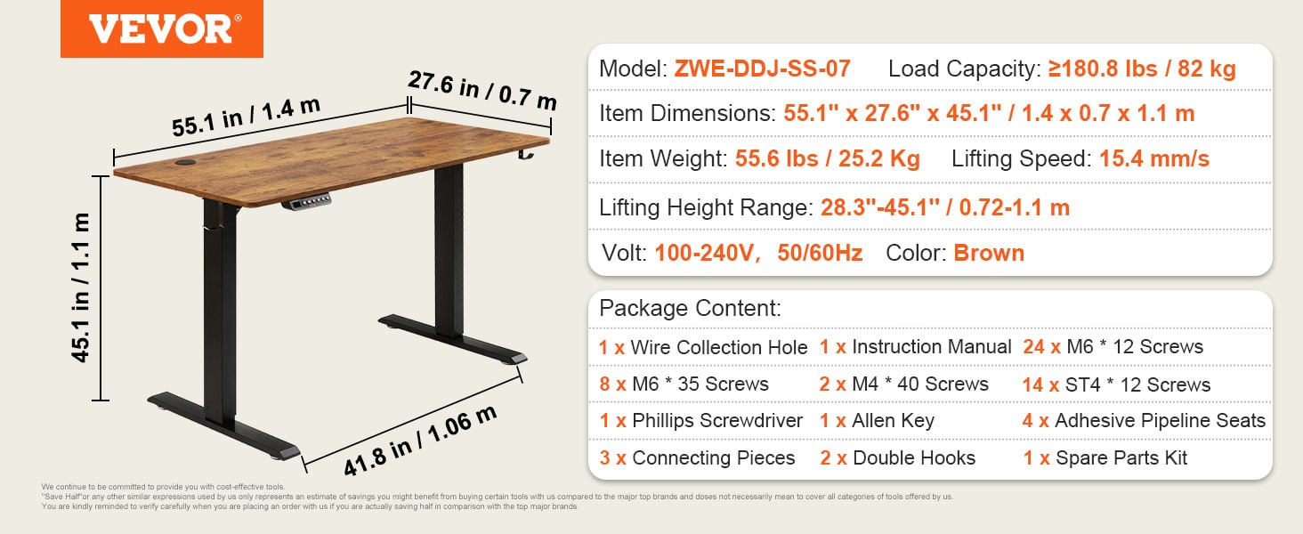VEVOR Bureau Assis-Debout Électrique Table Réglable en Hauteur 140x70x(72-110)cm