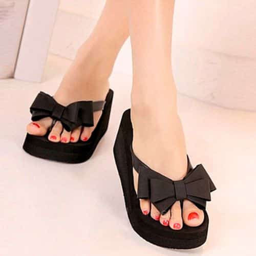 Découvrez nos tongs de plage à talons compensés noires. Avec un petit noeud à l’avant, vos tongs deviennent féminines en plus d’être confortables. C’est un véritable avantage qui vous permettra de porter ces tongs en ville comme à la plage.