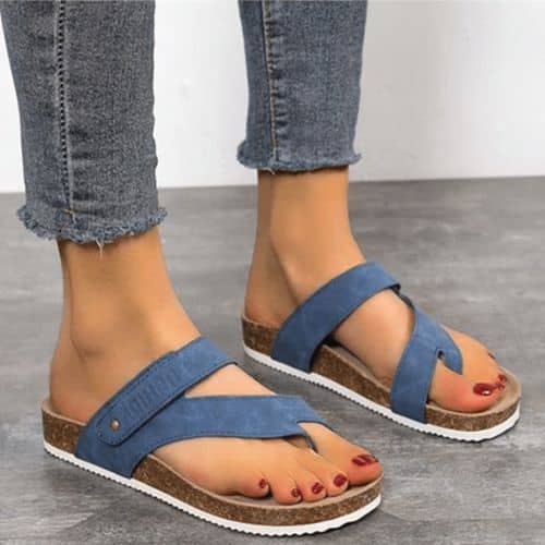 Découvrez nos tongs plates à semelle en liège orthopédique. Bleues, elles vont avec toutes vos tenues en plus d’être confortables pour vos pieds. Existent en plusieurs tailles, vous ne regretterez pas votre achat.