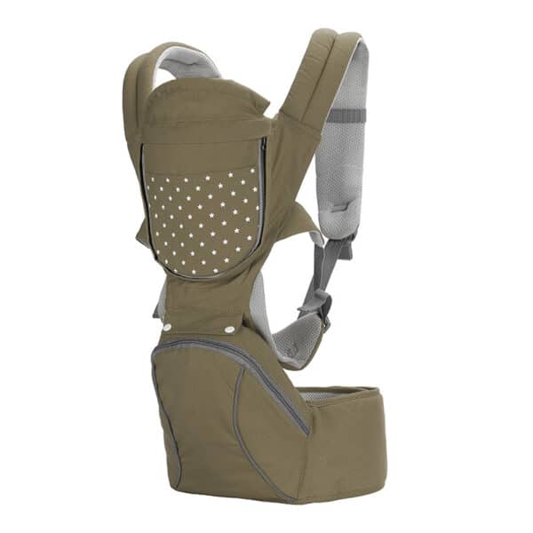 Notre porte bébé ergonomique vous permet de porter votre bébé dans différentes positions. Il a également une large ceinture qui maintient vos hanches et vous permet de l’assoir sans que vous n’ayez mal au dos.