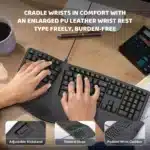 Le clavier WYMECT a été pensé pour améliorer le confort de frappe tout en respectant votre posture. Grâce à sa forme incurvée et ses touches légèrement bombées, il suit le mouvement naturel des doigts, réduisant les efforts inutiles. Le repose-poignet intégré en cuir souple offre un soutien agréable, parfait pour prévenir les douleurs aux poignets et aux avant-bras. Sa connectivité sans fil 2,4 GHz vous assure une utilisation fluide et sans encombrement de câbles. Avec ses 110 touches, il couvre tous vos besoins, du traitement de texte au jeu occasionnel.