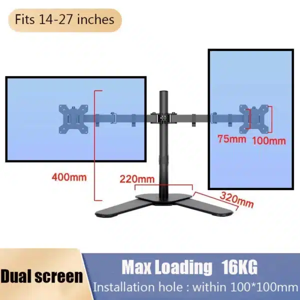 Ce support pour double moniteur est conçu pour accueillir deux écrans de 13 à 27 pouces, avec une capacité de charge de 8 kg par bras. Grâce à ses bras articulés, il permet de positionner chaque écran avec précision : inclinaison, rotation, hauteur… tout est ajustable pour un confort visuel maximal. Compatible avec les fixations VESA 75×75 et 100×100 mm, il libère de l’espace sur le bureau et favorise une posture plus ergonomique, idéale pour les journées de travail intensives.