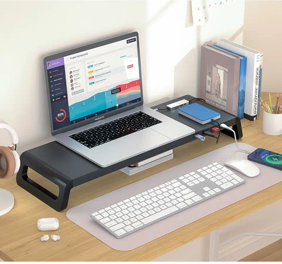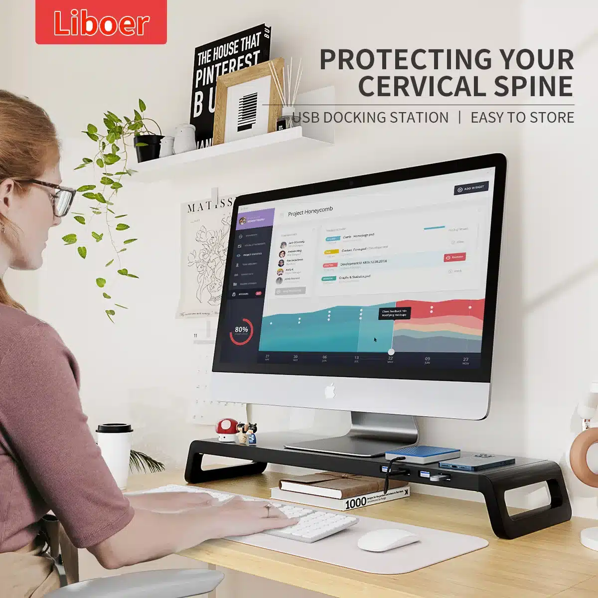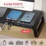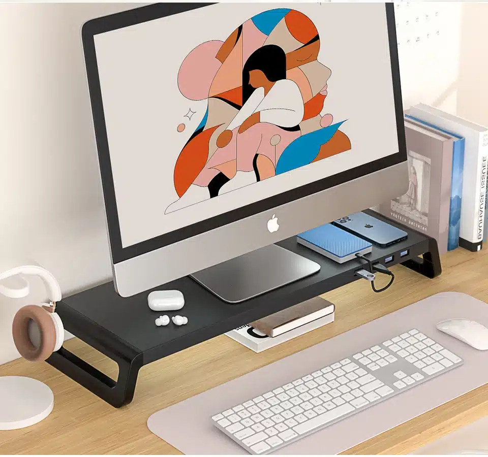 Ce support d’écran en aluminium et plastique ABS surélève votre écran à la hauteur idéale pour limiter les douleurs cervicales et la fatigue visuelle. Que vous soyez en télétravail ou en plein marathon gaming, il améliore votre posture en douceur. Avec ses 4 ports USB 3.0 intégrés, vous branchez facilement souris, clavier, clé USB ou téléphone, sans avoir à chercher les ports derrière l’écran. Compatible avec les écrans de 13 à 24 pouces, il s’installe en un clin d’œil grâce au tournevis fourni. Un petit plus qui change tout.