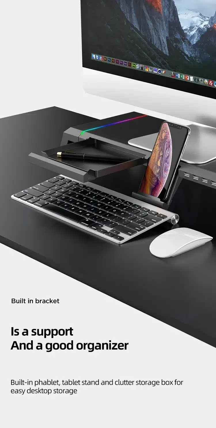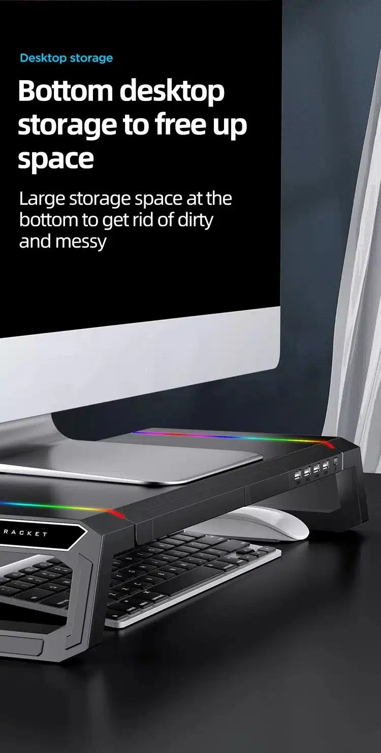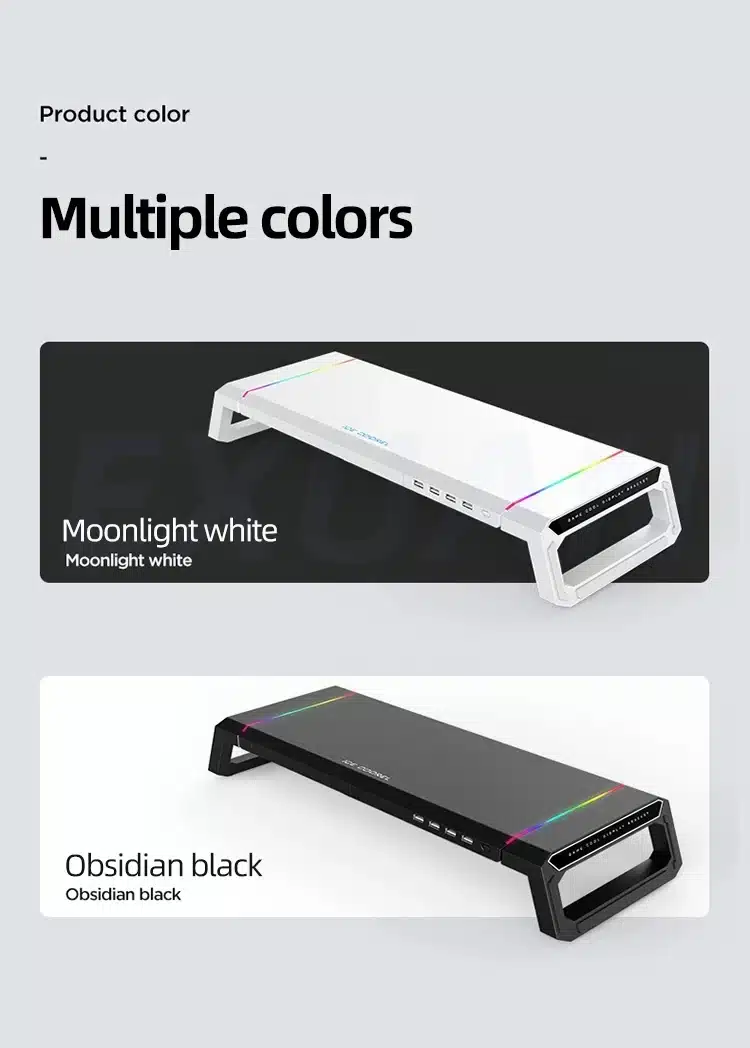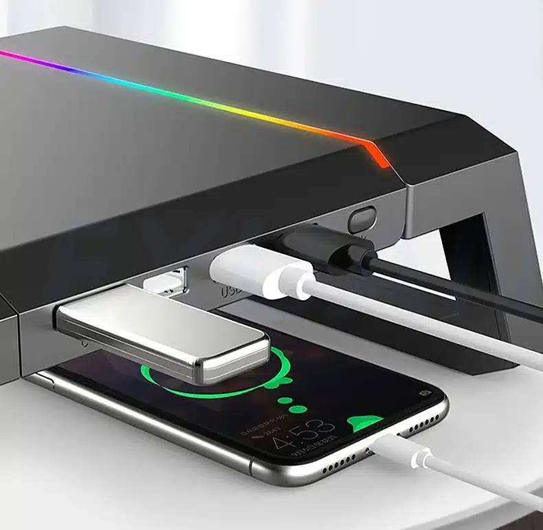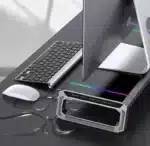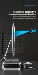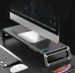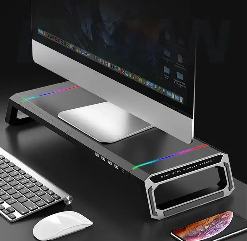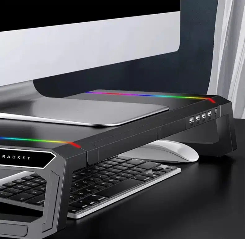 Le rehausseur MECO ELEVERDE coche toutes les cases du bureau moderne : ergonomie, style et organisation. Sa structure robuste supporte jusqu’à 30 kg sans vaciller, idéal pour un écran large ou un setup double. Les 4 ports USB intégrés facilitent la connexion de vos accessoires (clavier, souris, clé USB…), tandis que l’éclairage LED RGB apporte une touche dynamique à votre espace de travail. Facile à plier pour gagner de la place, il s’adapte à tous les besoins. En bref : un outil complet pour adopter une posture plus saine, sans renoncer à la praticité ni à l’esthétique. Que vous soyez gamer, étudiant ou télétravailleur, ce support d’écran rehausse votre confort autant que votre productivité.