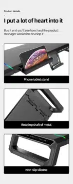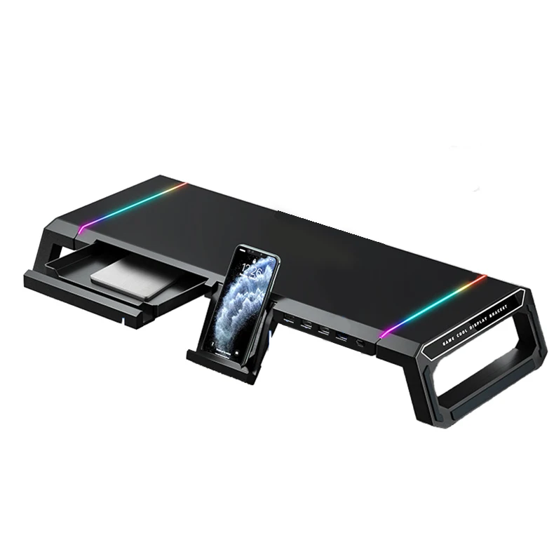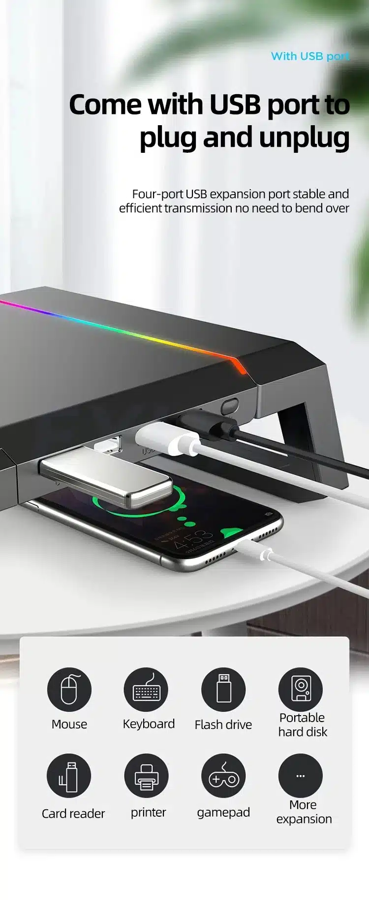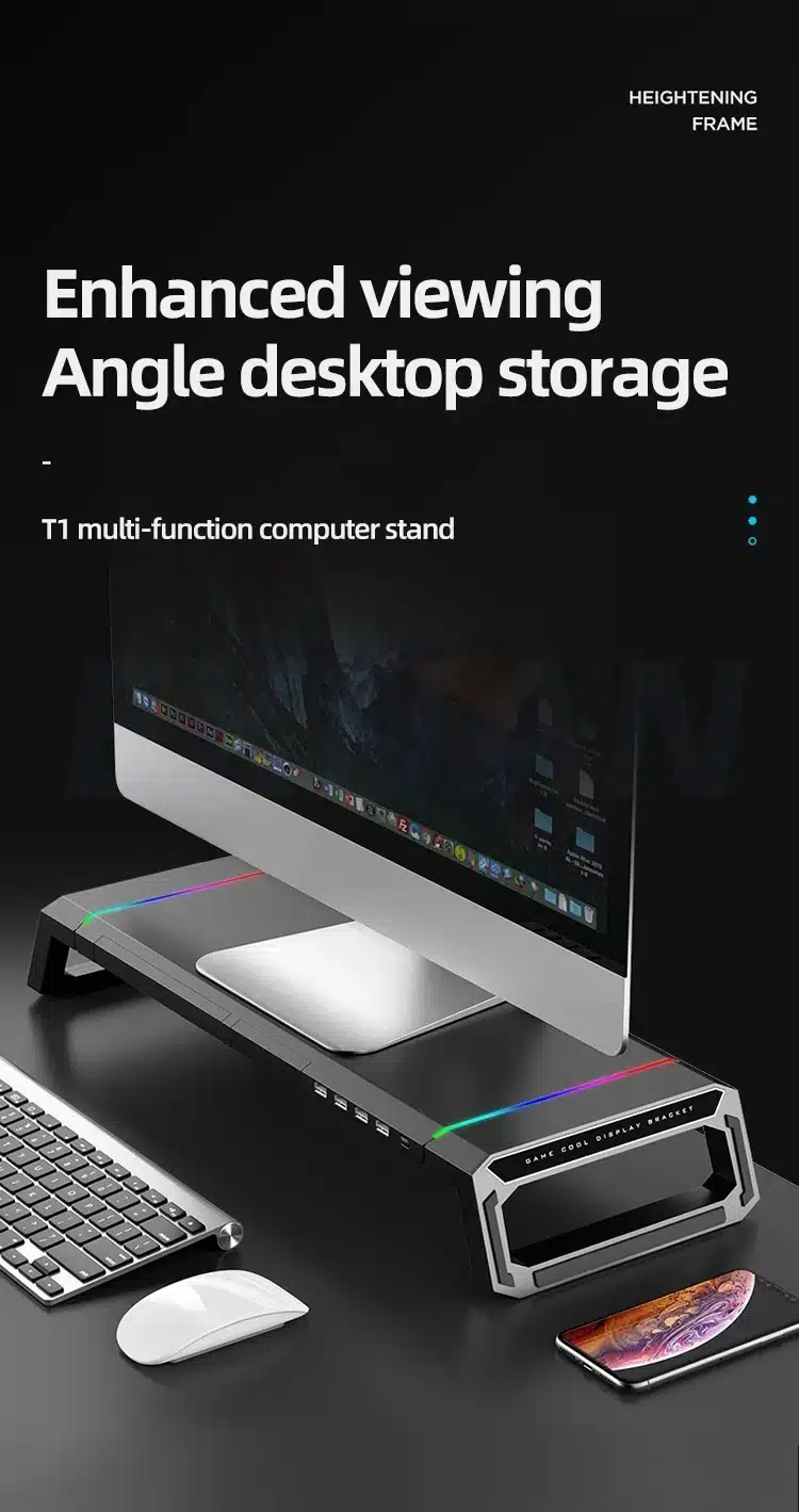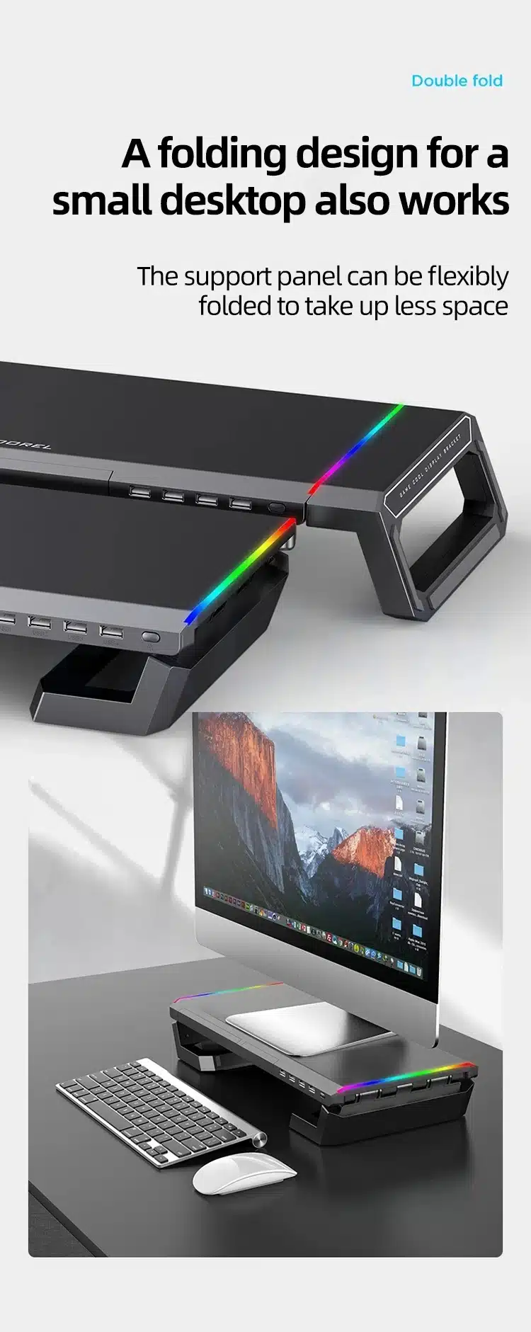 Le rehausseur MECO ELEVERDE coche toutes les cases du bureau moderne : ergonomie, style et organisation. Sa structure robuste supporte jusqu’à 30 kg sans vaciller, idéal pour un écran large ou un setup double. Les 4 ports USB intégrés facilitent la connexion de vos accessoires (clavier, souris, clé USB…), tandis que l’éclairage LED RGB apporte une touche dynamique à votre espace de travail. Facile à plier pour gagner de la place, il s’adapte à tous les besoins. En bref : un outil complet pour adopter une posture plus saine, sans renoncer à la praticité ni à l’esthétique. Que vous soyez gamer, étudiant ou télétravailleur, ce support d’écran rehausse votre confort autant que votre productivité.
