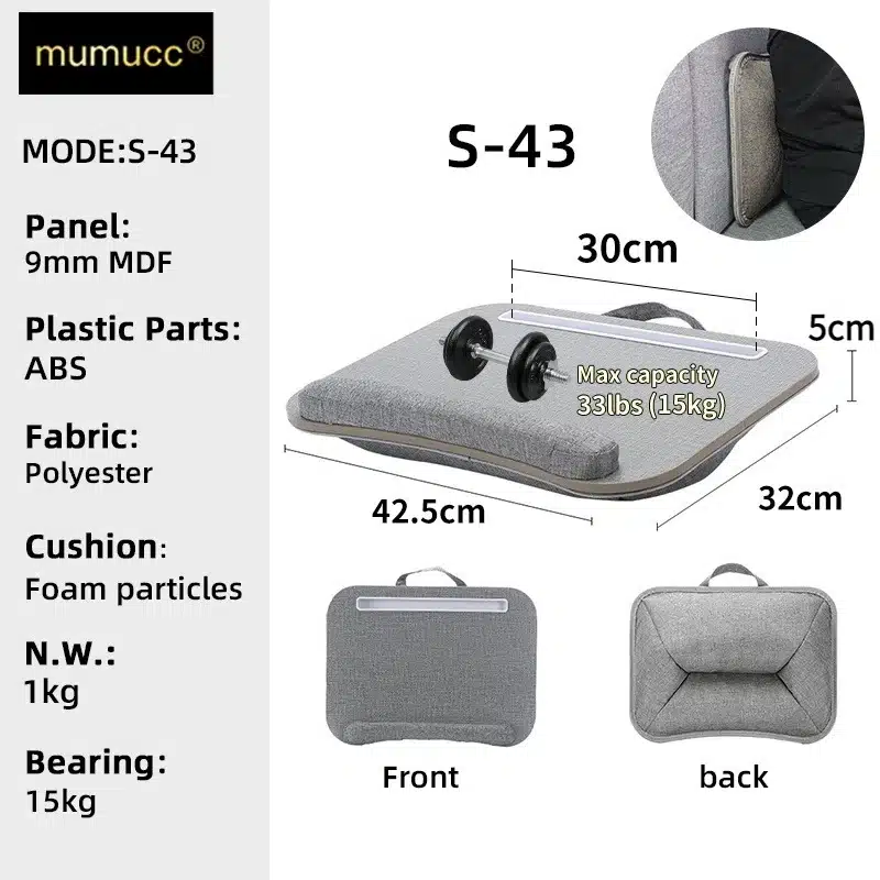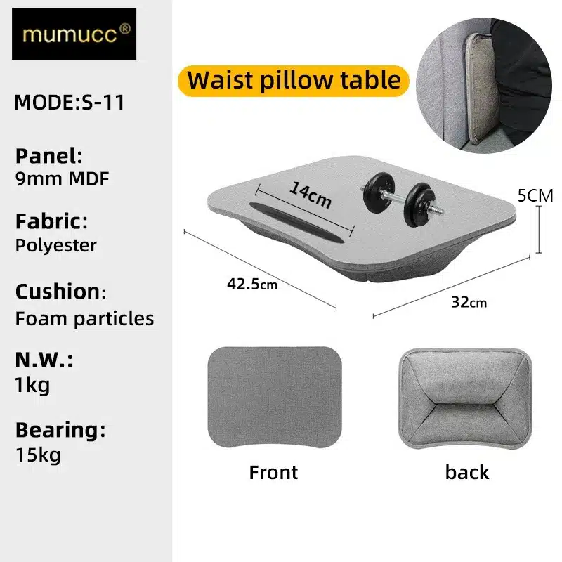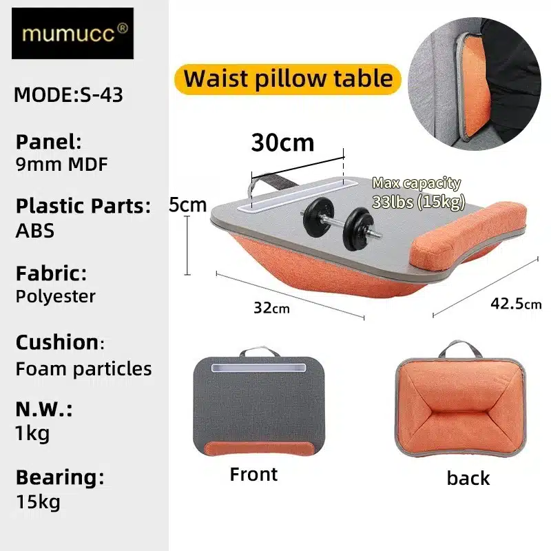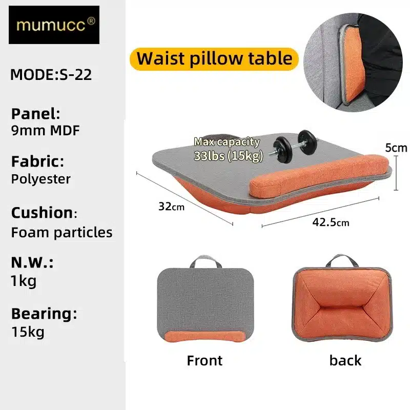 Ce bureau portable MUMUCC S‑22 est l’allié idéal pour installer votre ordinateur sur le lit, le canapé, en voiture… Sa structure légère (MDF + plastique) et son rembourrage en polyester et EPS offrent une assise douce et stable. Compact et solide, il pivote facilement avec vous et transforme n’importe quel espace en poste de travail confortable. Simple, efficace — mettez‑vous au travail sans contraintes !