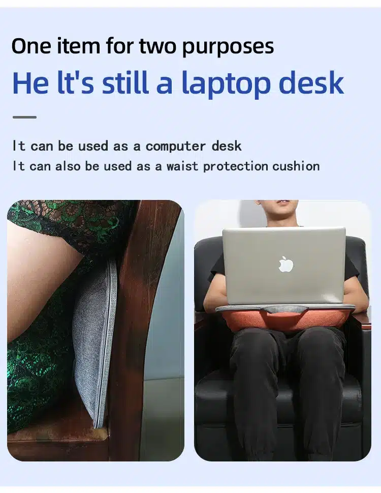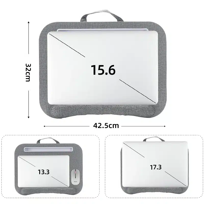 ce support d’ordinateur est conçu pour s’adapter à tous vos déplacements, ce plateau est pensé comme un bureau d’appoint multifonctionnel. Sa structure rectangulaire offre une plateforme stable, tandis que le garnissage en polyester et EPS crée une base moelleuse qui épouse les genoux ou les surfaces irrégulières. Aucun réglage nécessaire : posez‑le et travaillez. Idéal pour les séances de lecture, d’écriture ou de navigation sur un canapé, dans un lit ou même en voiture. Léger et robuste, il se glisse facilement dans un sac. Le compagnon parfait pour le télétravail, les étudiants ou les voyages !