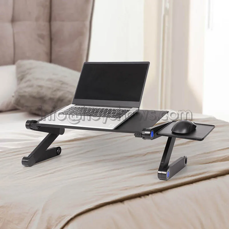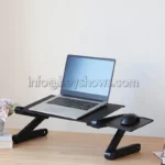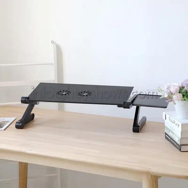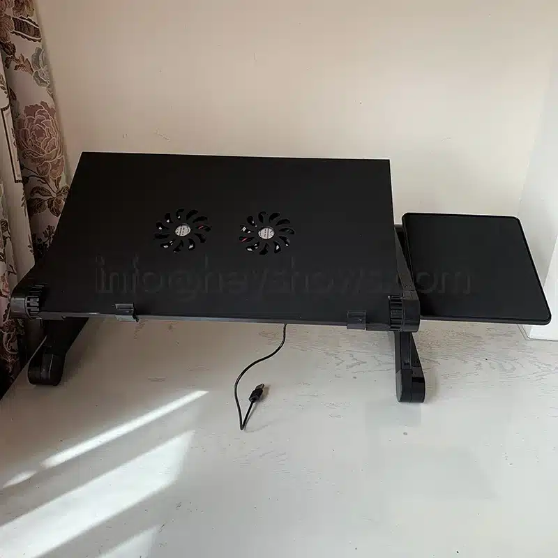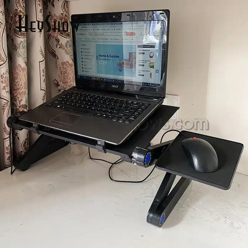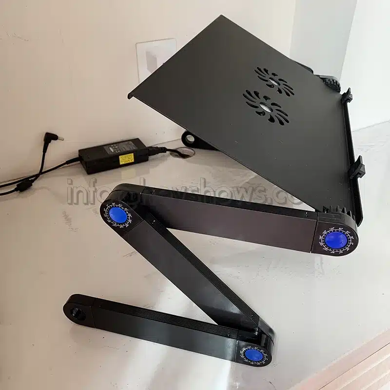 Transformez n’importe quel espace en poste de travail ergonomique avec ce support pliable pour ordinateur portable. Grâce à sa structure en métal robuste, ses pieds entièrement ajustables et son plateau inclinable, il s’adapte parfaitement à vos besoins : travail au lit, sur le canapé ou sur un bureau. Sa conception ventilée évite la surchauffe de votre appareil, et son format pliable vous permet de l’emporter partout. Idéal pour soulager le dos et la nuque pendant de longues sessions.