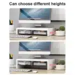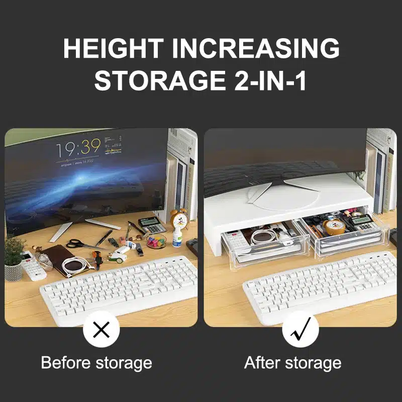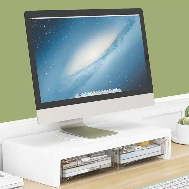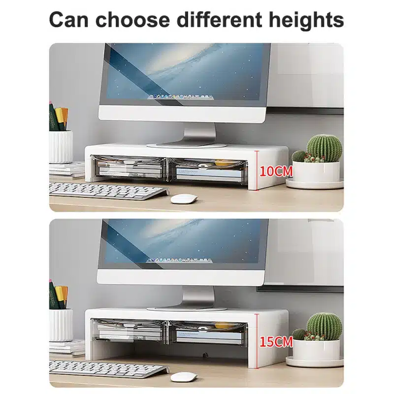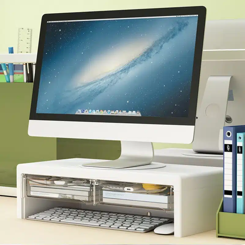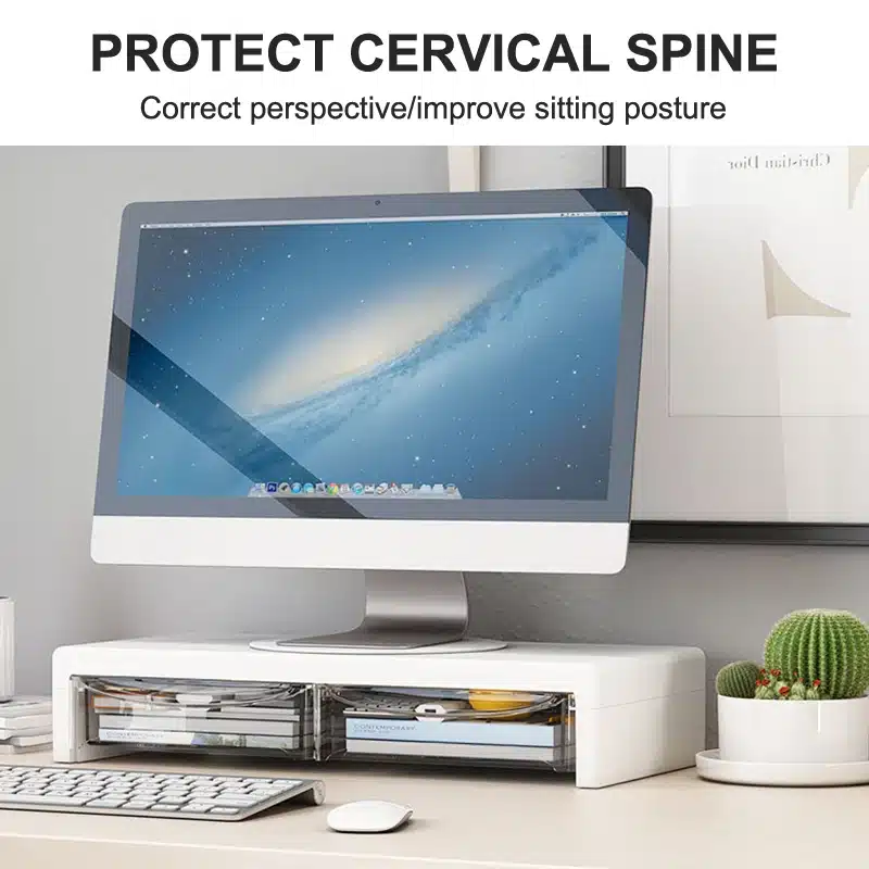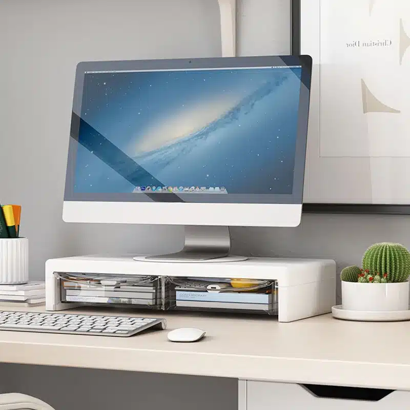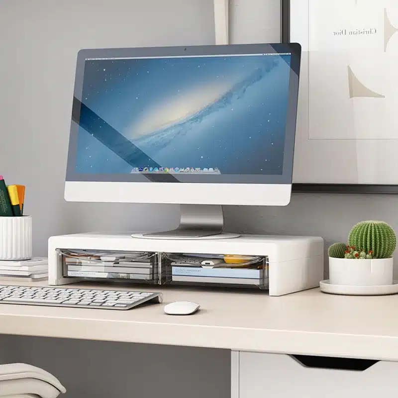 Fini les douleurs au cou après une journée d’écran ! Ce support en bois surélève votre moniteur à la hauteur des yeux, favorisant une posture droite et confortable. Résultat : moins de fatigue, plus d’efficacité. Avec ses tiroirs intégrés, vous gagnez aussi de l’espace pour ranger vos essentiels : câbles, carnets, lunettes… Il convient parfaitement aux ordinateurs portables ou écrans de 10 à 20 pouces. Solide, discret et facile à intégrer, il transforme votre espace en un bureau fonctionnel et agréable.