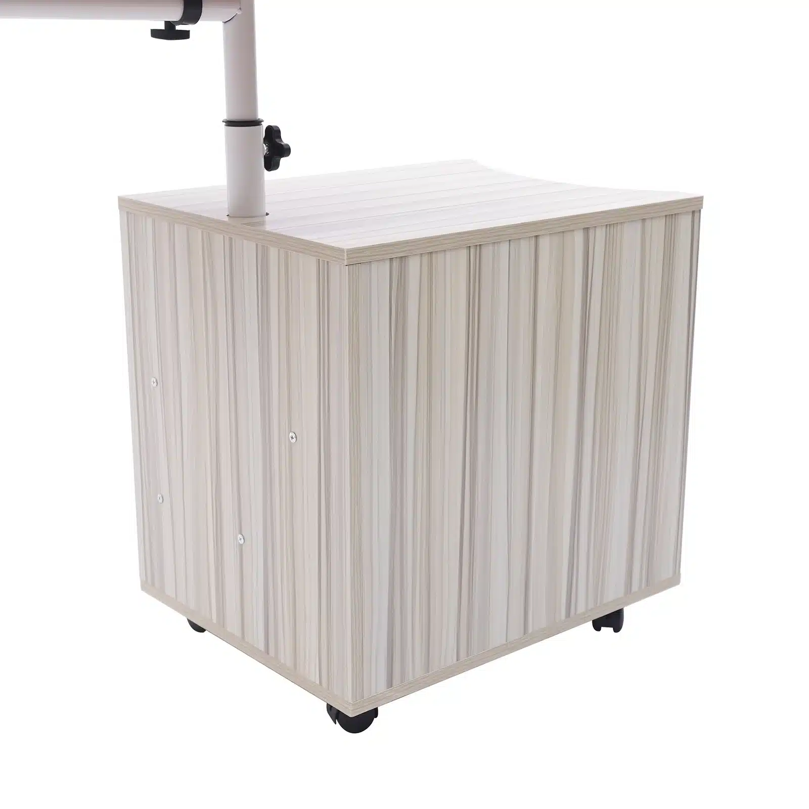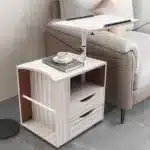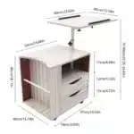 Ce meuble de chevet au style moderne marocain allie design épuré et fonctionnalité. Sa structure en panneau de densité robuste accueille un plateau réglable en hauteur (de 70 à 90 cm) et des compartiments de rangement pratiques. Compact (50 x 40 x 46 cm), il se glisse facilement à côté d’un lit ou d’un canapé. Monté sur roulettes avec freins, il se déplace en un clin d’œil tout en restant parfaitement stable une fois positionné.