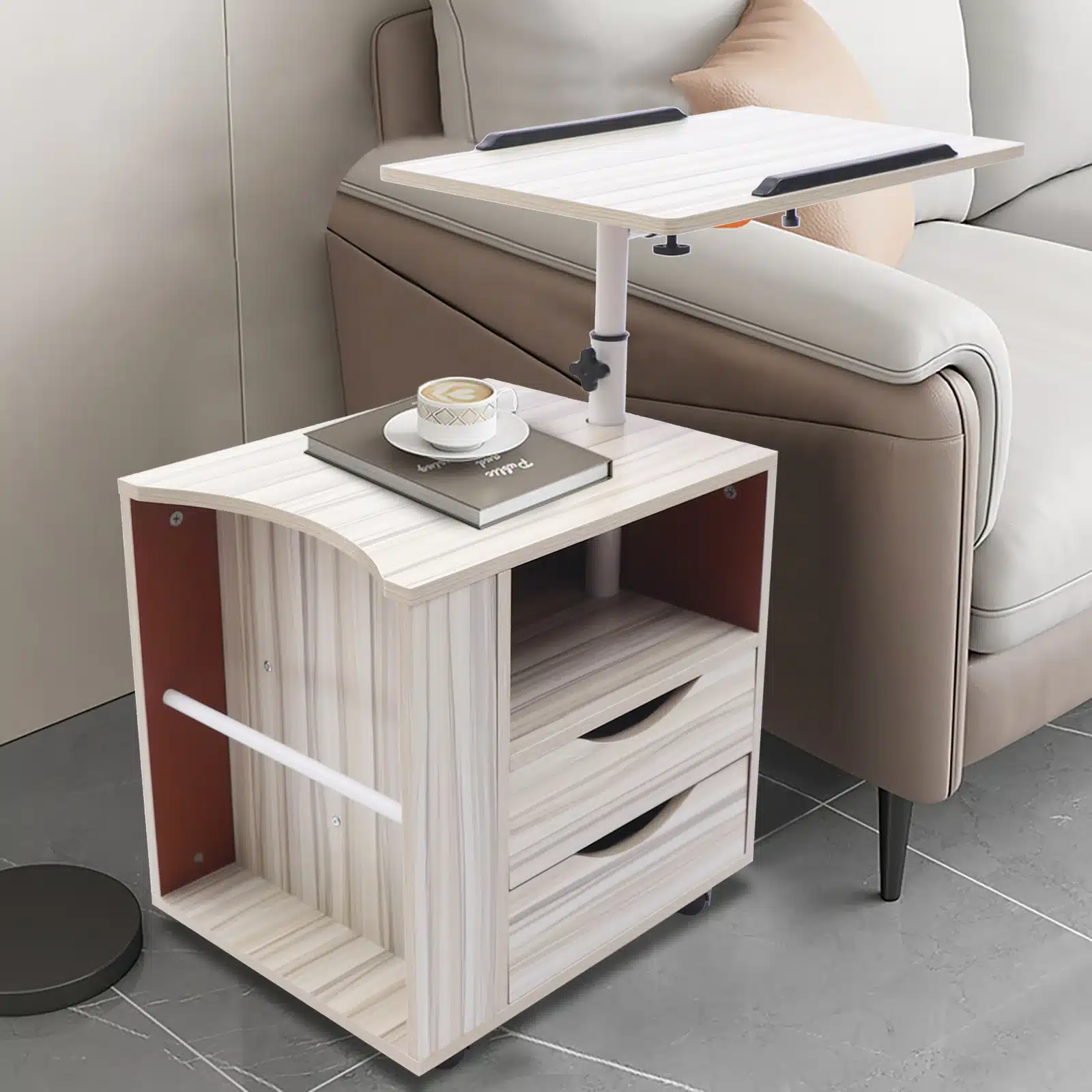 Pensé pour s’adapter à tous vos moments de détente ou de travail à la maison, ce chevet astucieux dispose de plusieurs niveaux de rangement pour garder vos affaires à portée de main. Le plateau supérieur réglable permet de lire, écrire ou utiliser un ordinateur confortablement, même depuis un lit ou un fauteuil. Grâce à ses roulettes verrouillables, il se déplace facilement tout en offrant une stabilité sécurisée. Son déflecteur antidérapant évite les chutes d’objets, et la conception renforcée en acier épais (1,2 mm) garantit solidité et durabilité. Pratique, compact, esthétique — il s’intègre partout avec élégance !
